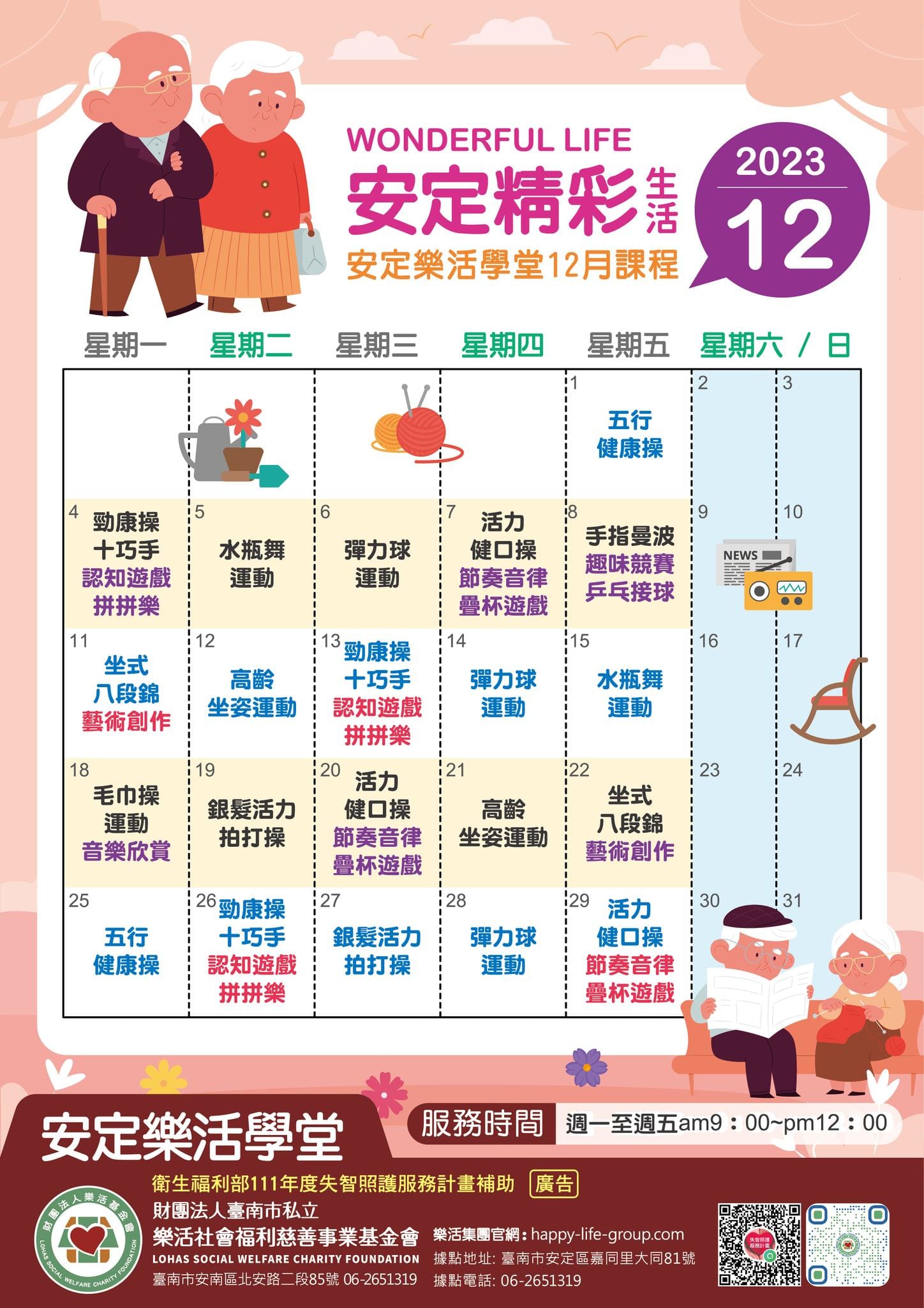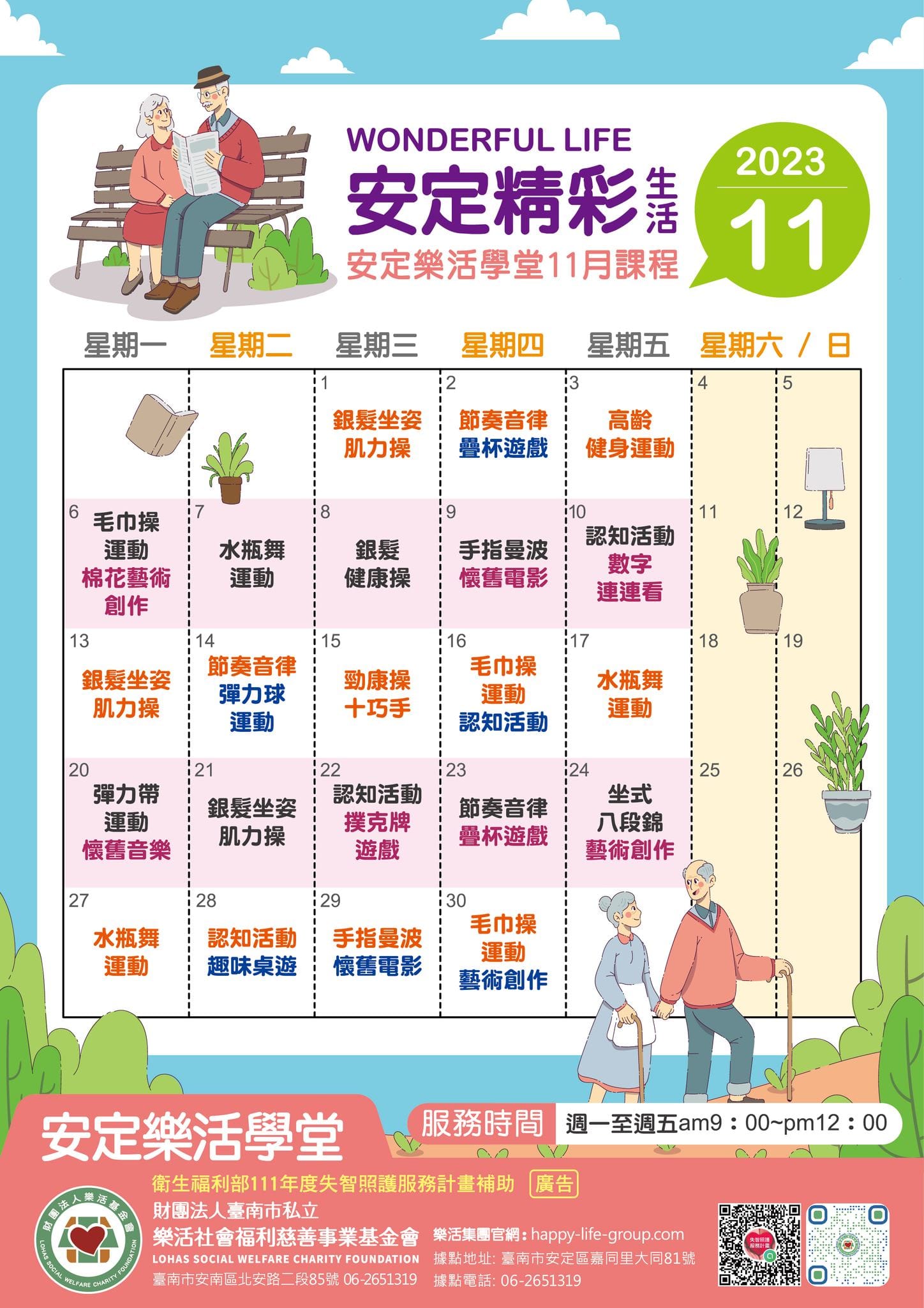 安定樂活學堂 11月份的課程出爐囉 銀髮坐姿運動 藝術創作 音樂欣賞 認知活動 懷舊電影 豐富的活動安排 幫助…