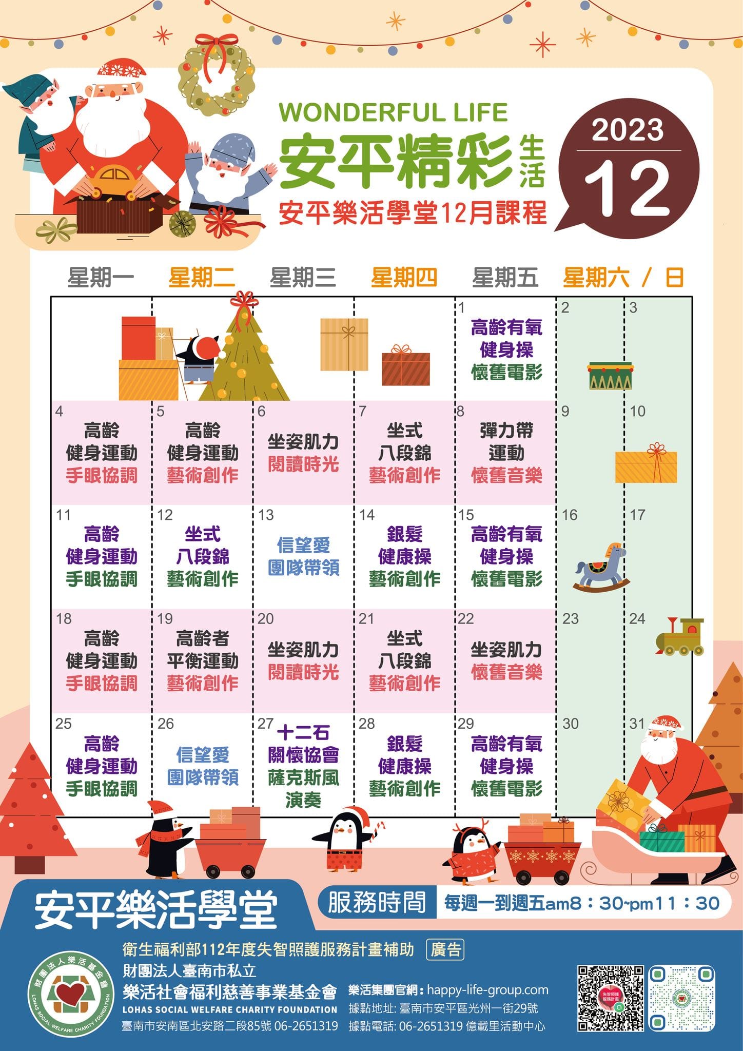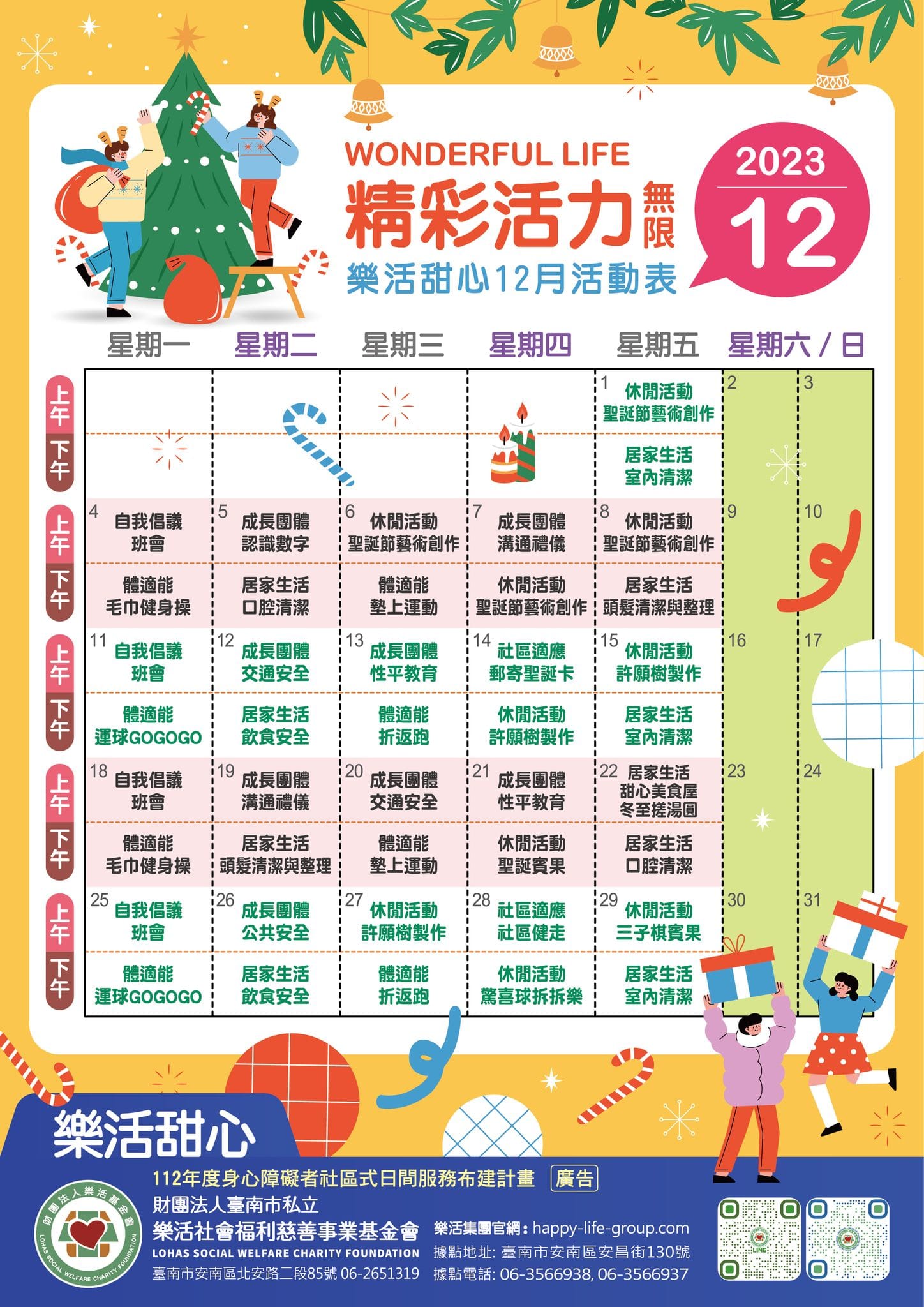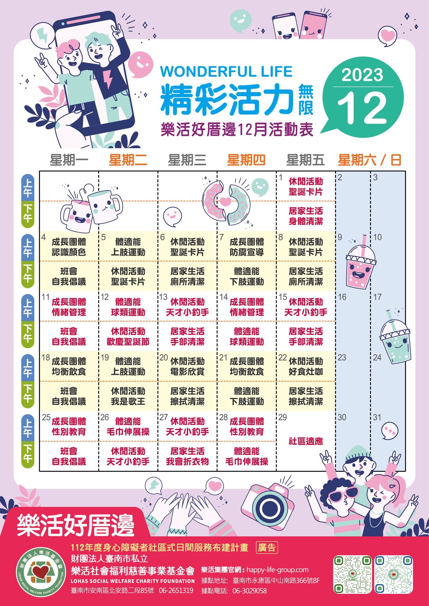 樂活好厝邊 ~熱烈招生中 熱呼呼的12月份活動表出爐囉 休閒活動社區適應 體適能活動班會活動好食灶咖 聖誕派對…