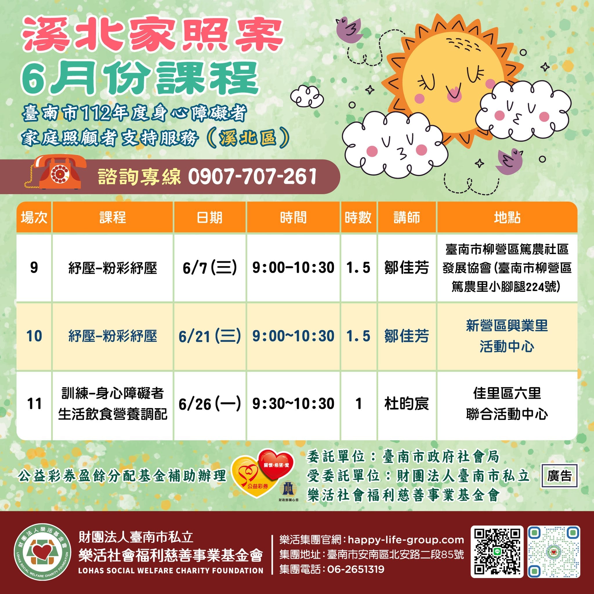 樂活甜心 6月份課表出爐囉 我們的課程內容豐富且多元 快來和我們一起學習及同樂吧 #樂活甜心布建 #身心障礙者…