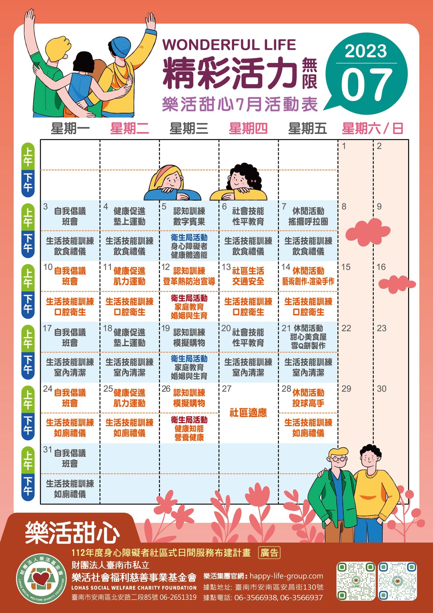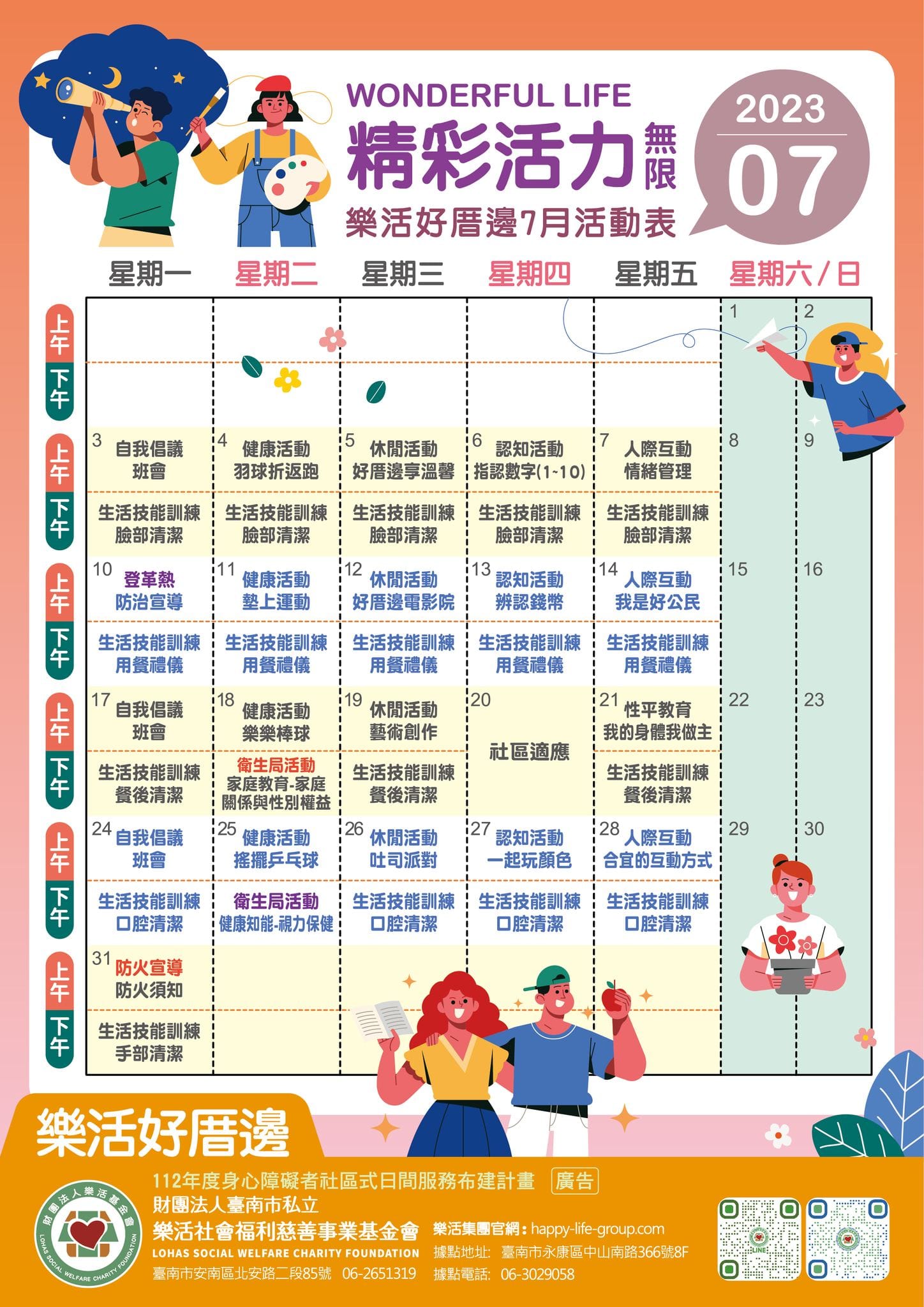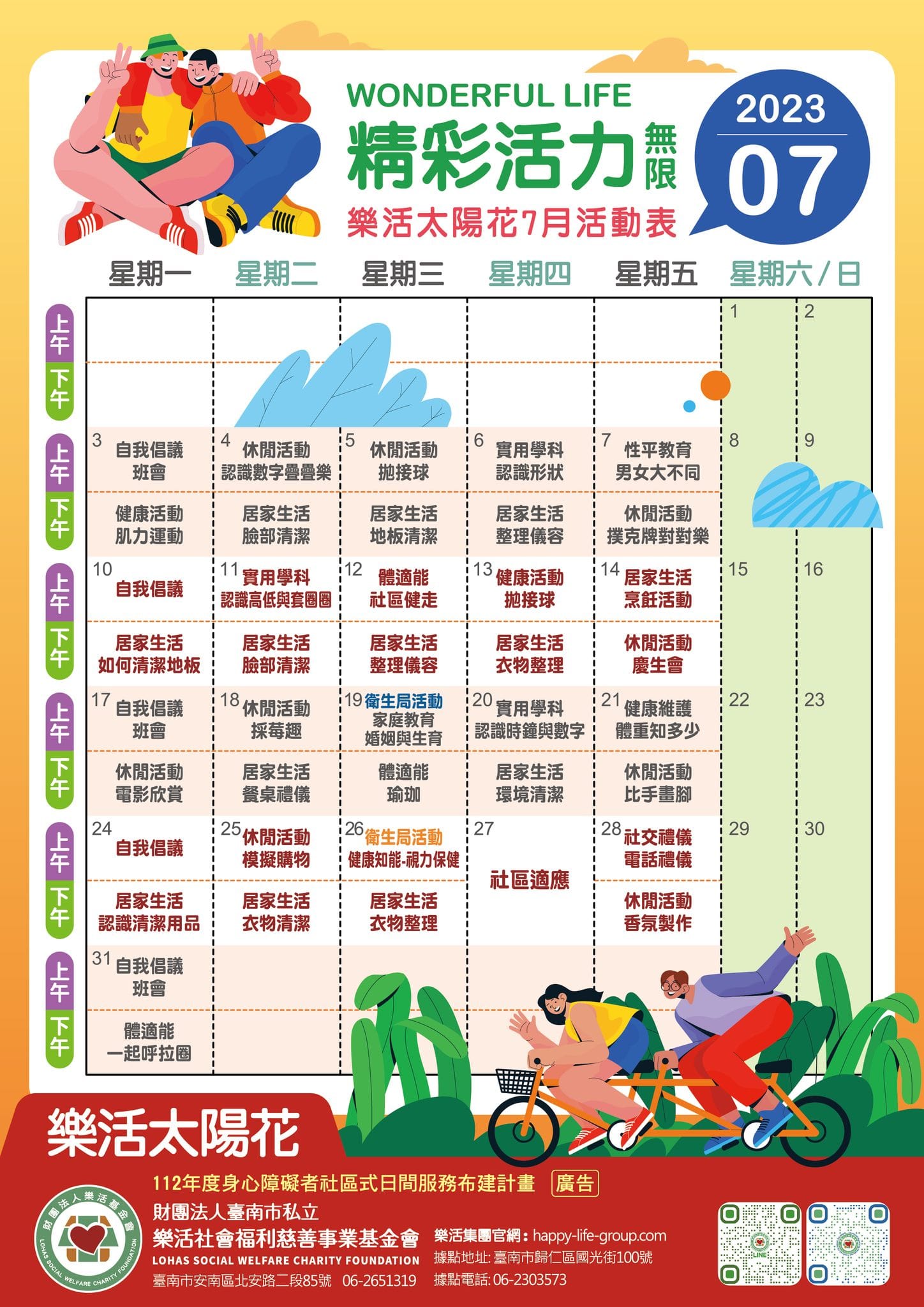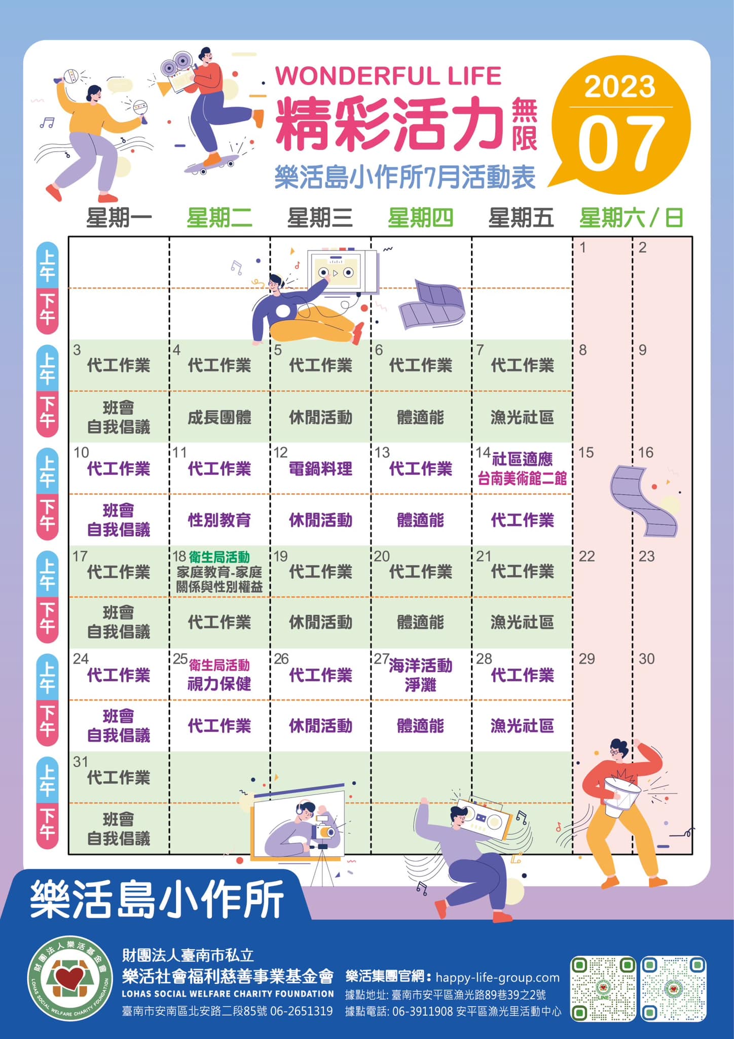 樂活島小作所 快來與智青一起渡過繽紛夏日 樂活島7月活動表出爐囉 代工作業 體適能活動 一起來動茲動 休閒活動…