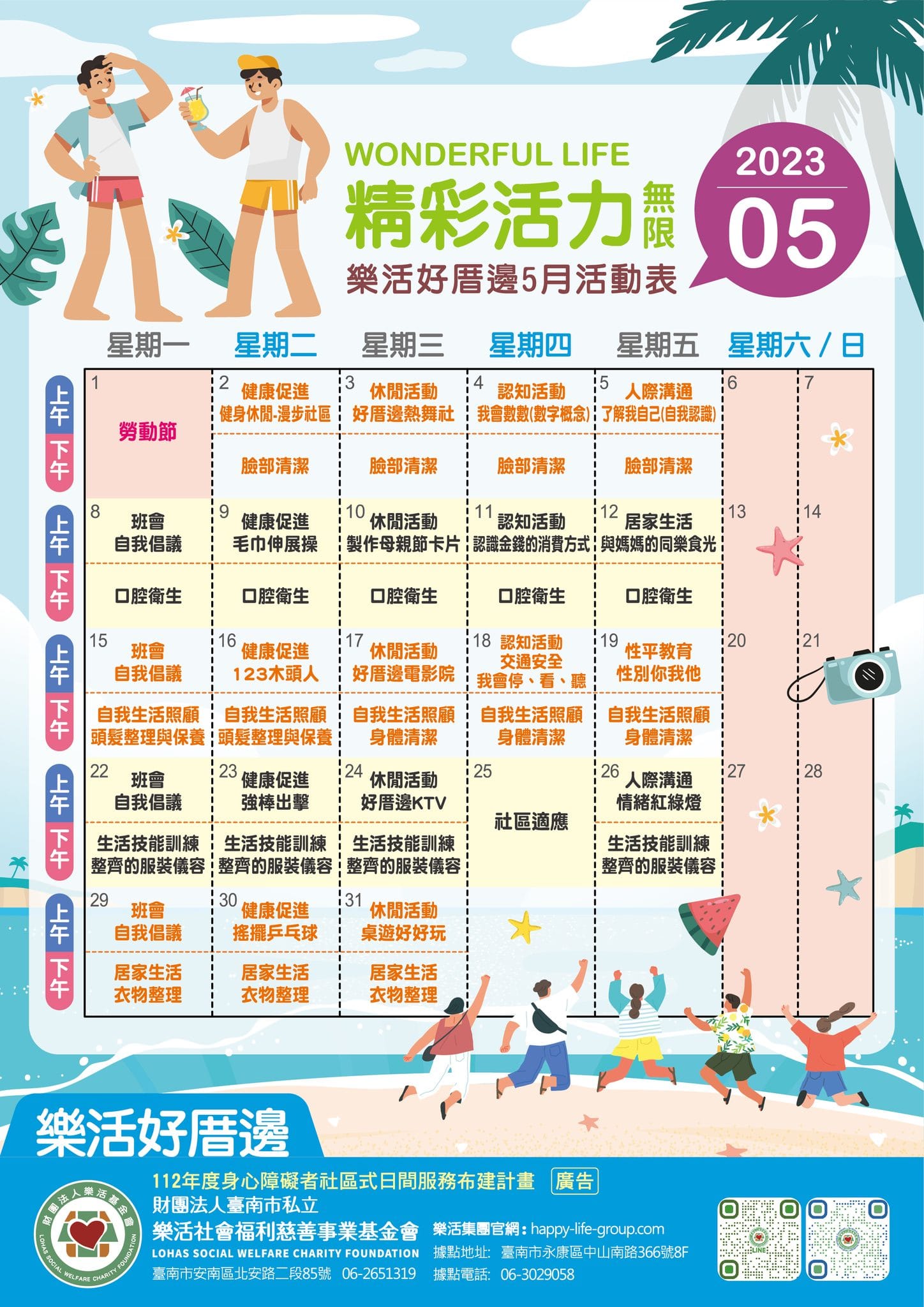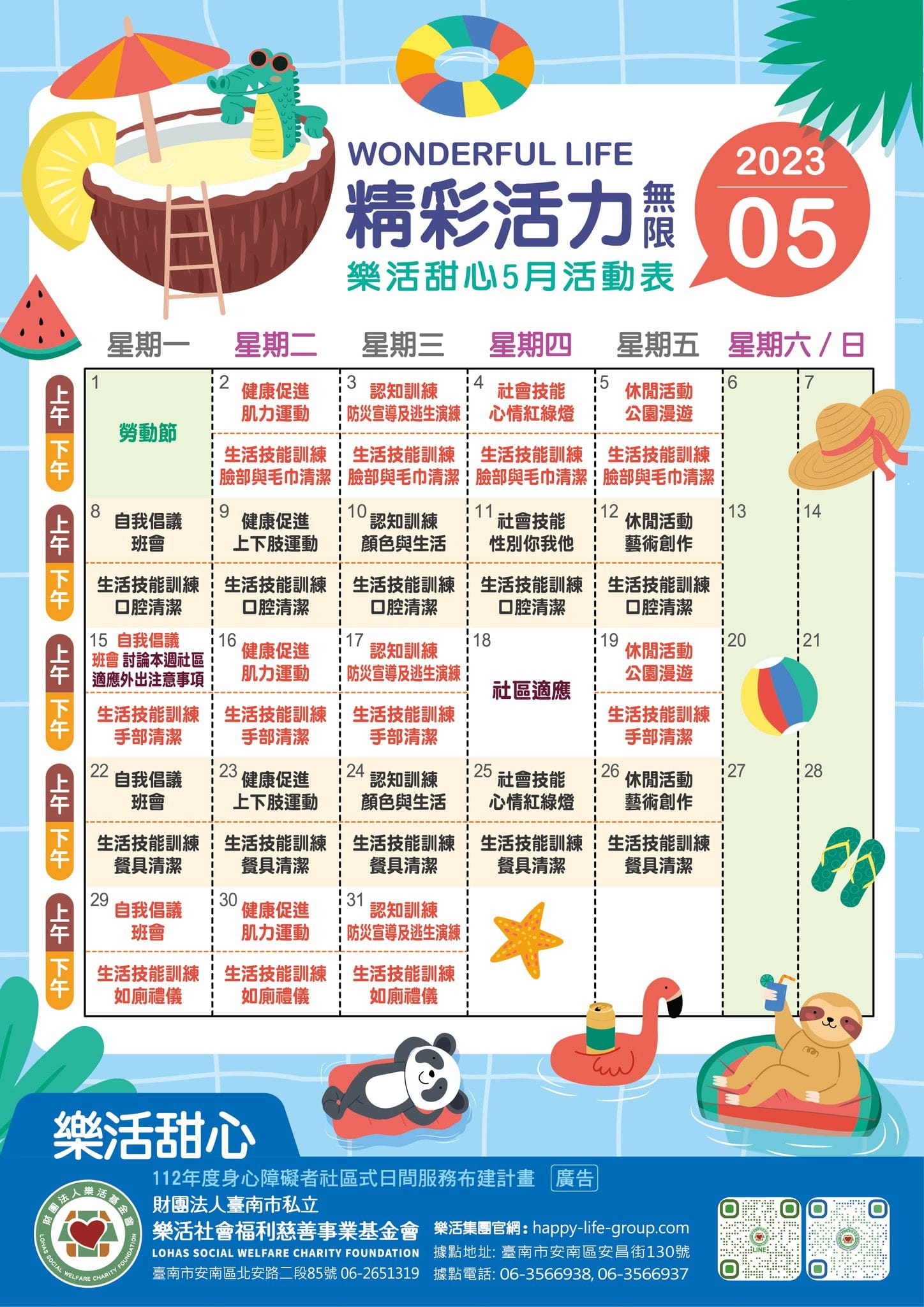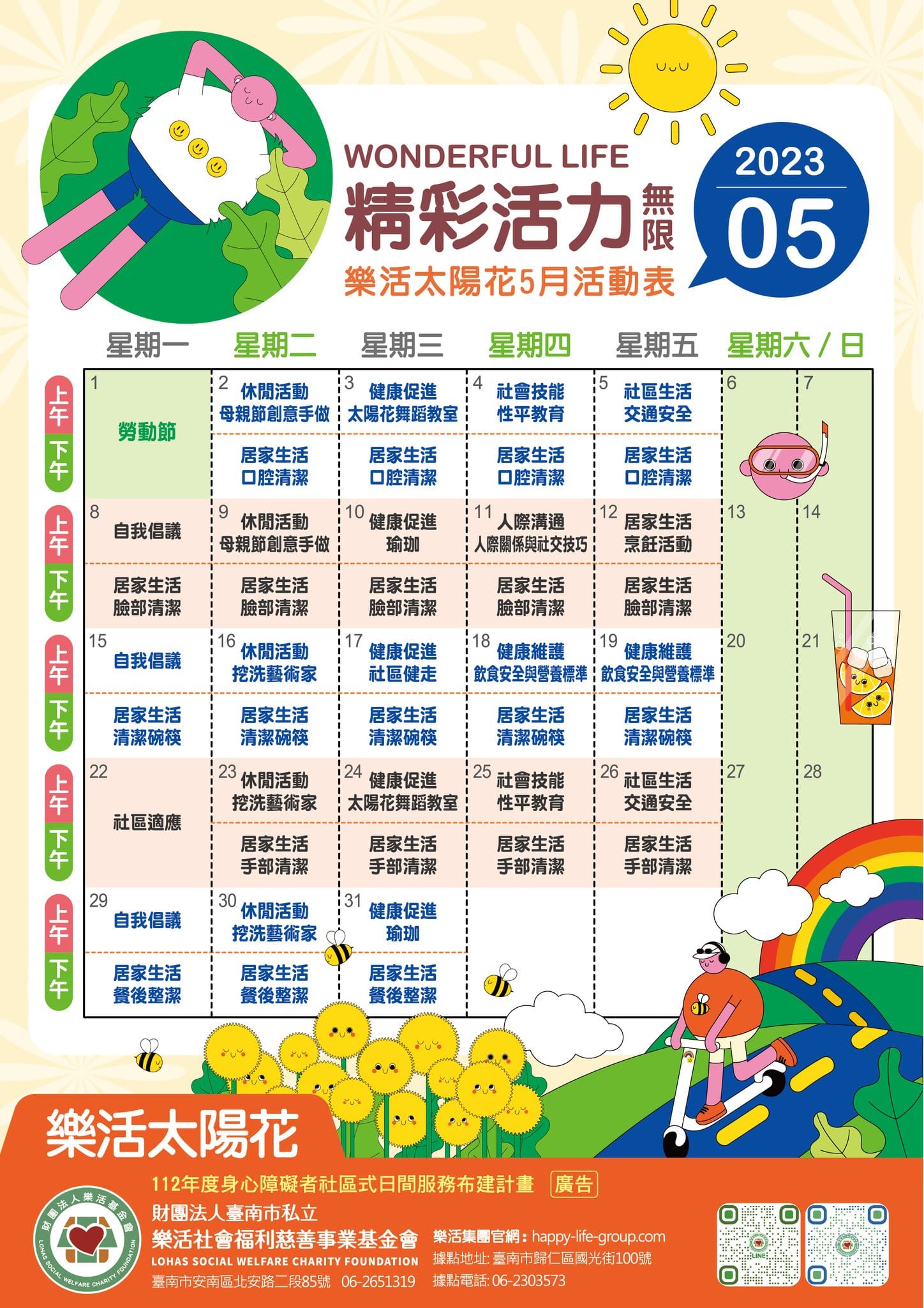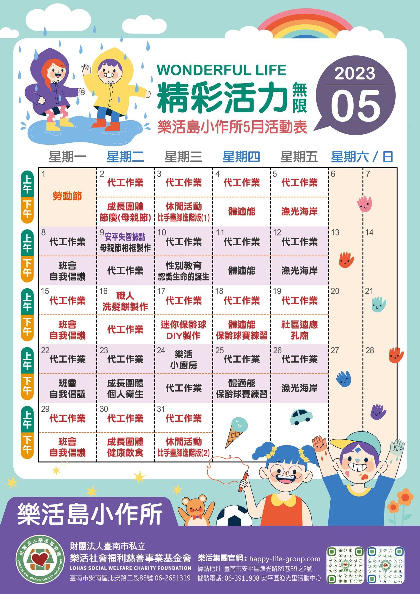 樂活島小作所 2023年5月份精彩活動表 出爐囉 樂活島 《5月活動有趣又精彩》 代工作業 體適能活動 休閒活…