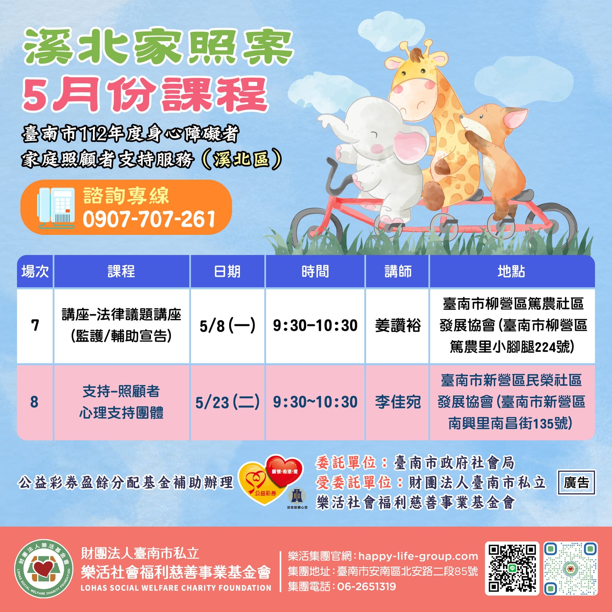 112年度身心障礙者家庭照顧者支持服務-溪北區 5月課程在這裏有時間千萬要一同來參與,家中大小都可以參與唷!~…
