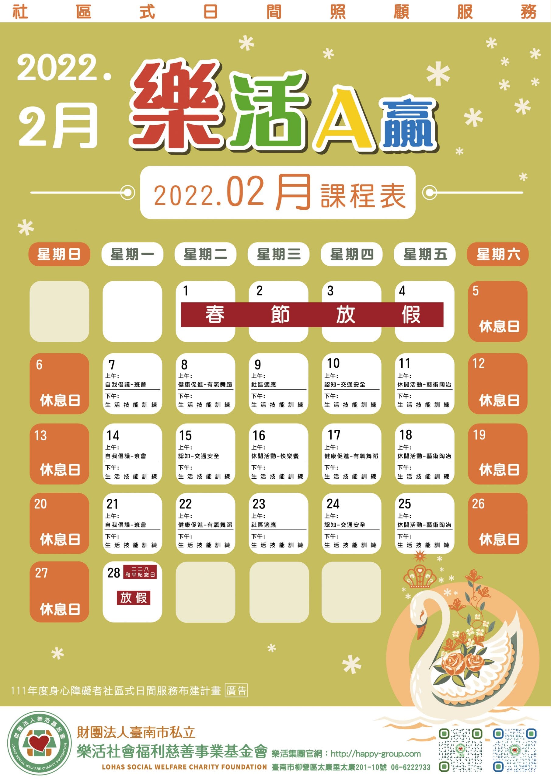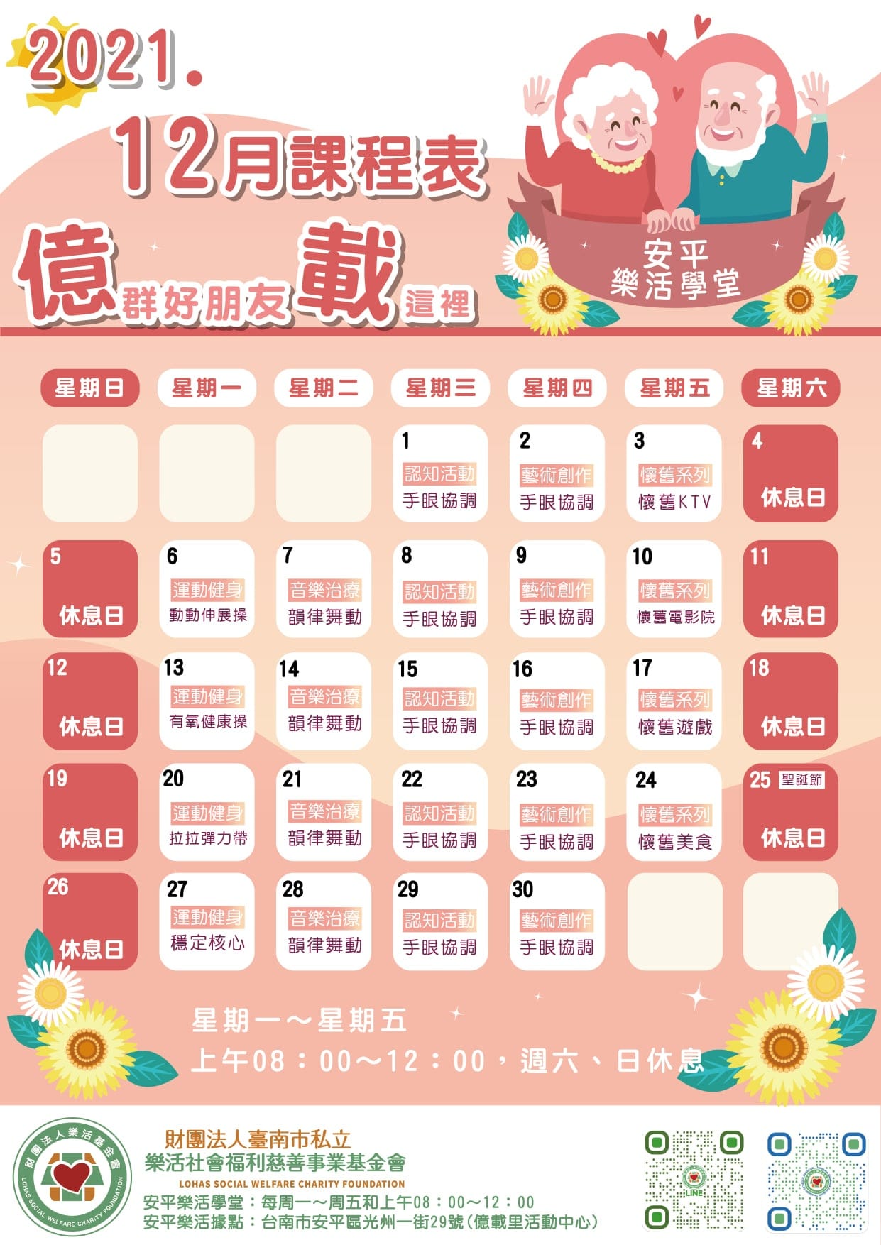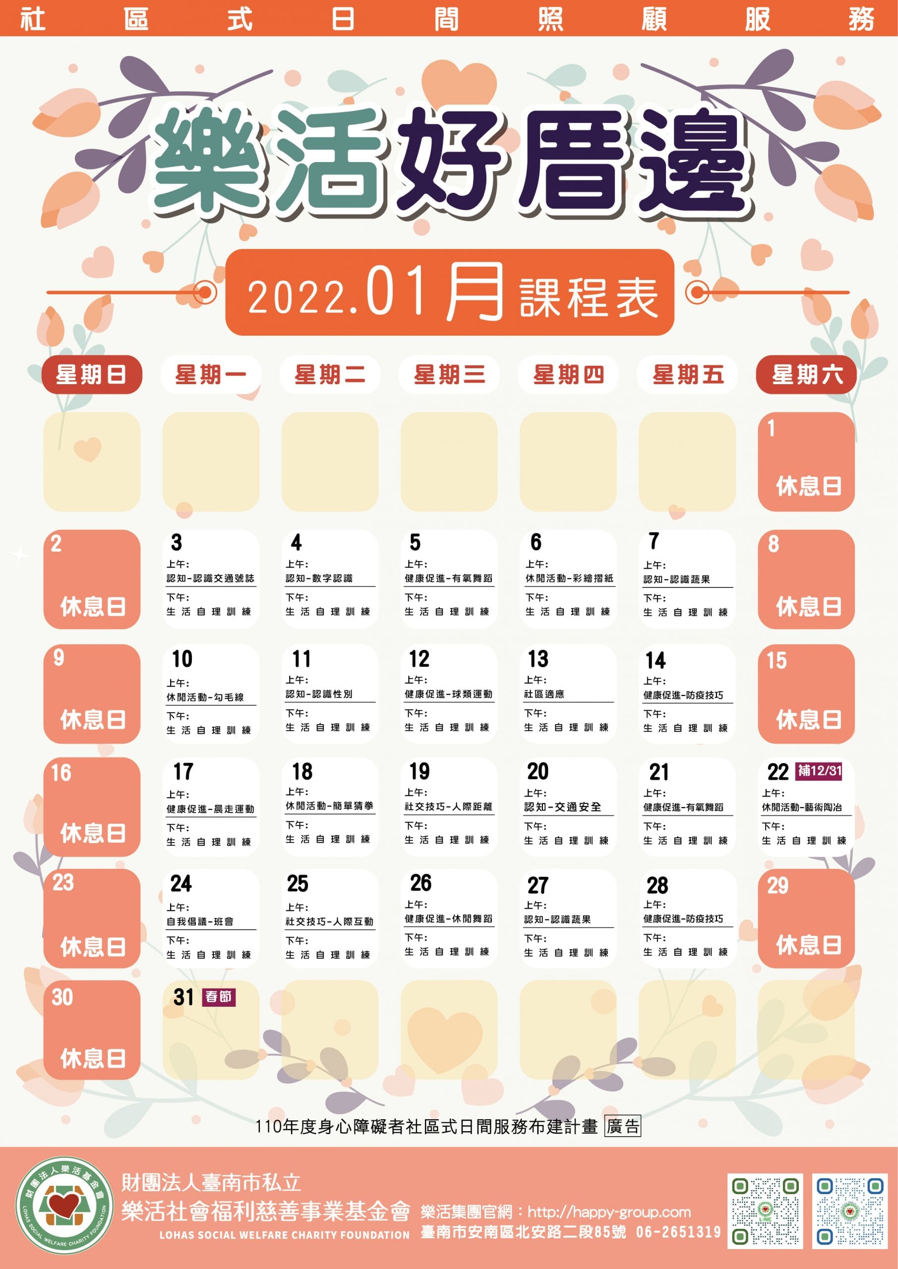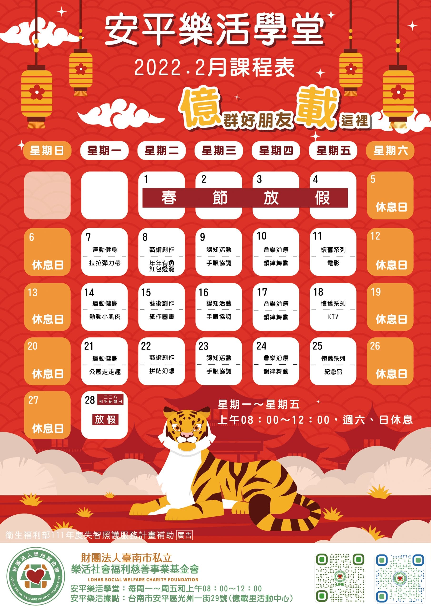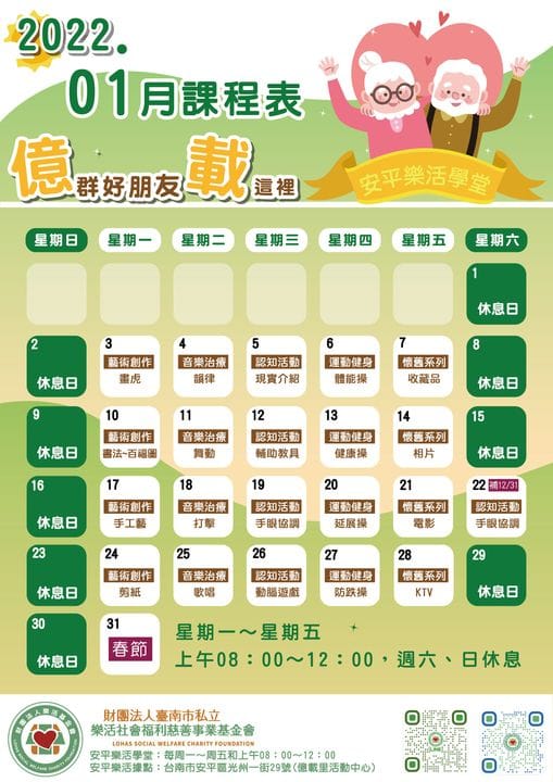 課表出爐囉本月的特色課程 配合過年有安排過年氣息的手工創作 在課程的安排真的別有用心 課程當中有延緩失智的課程…