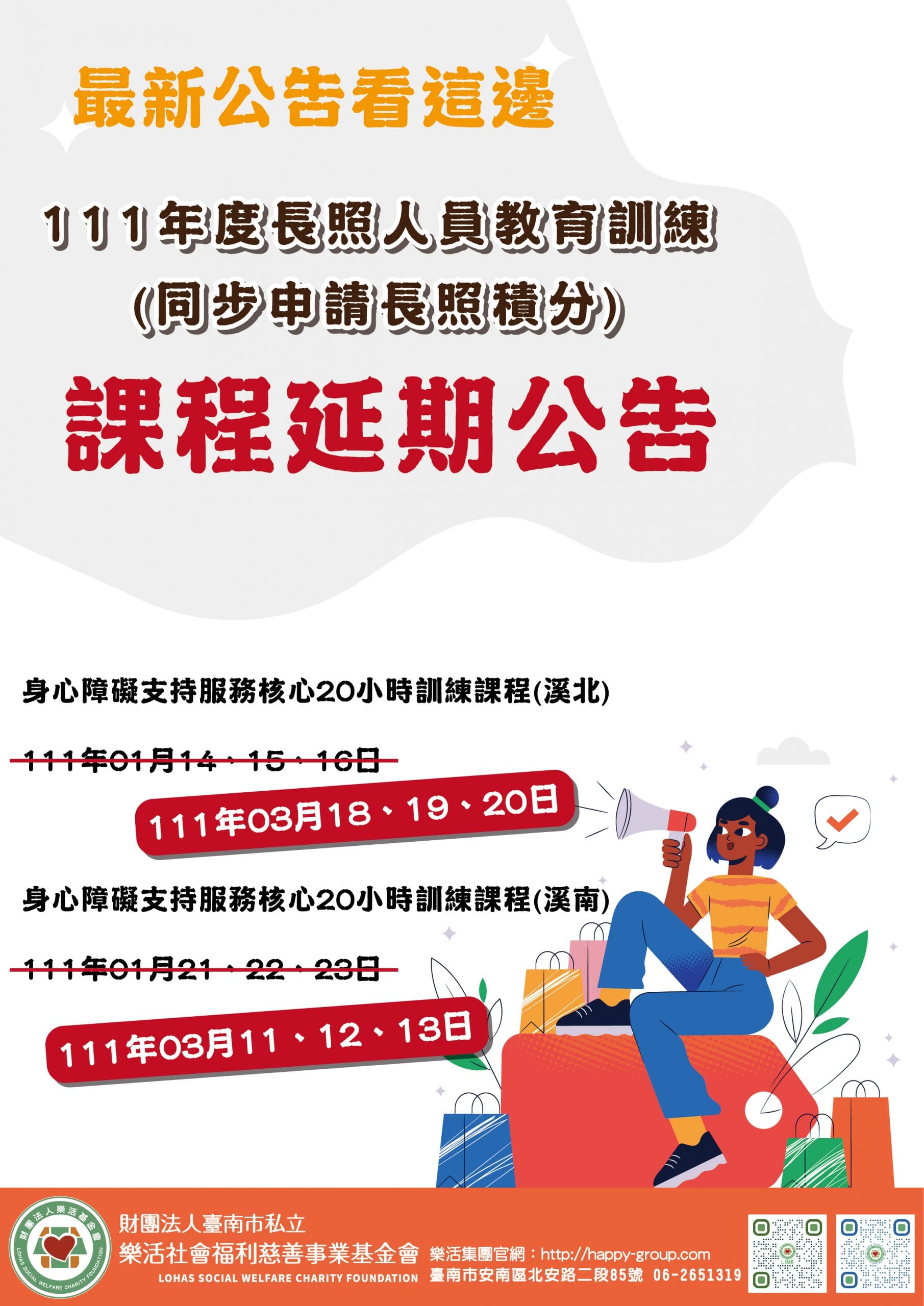!需要上課的同學趕緊來報名! 111年度長照人員教育訓練(同步申請長照積分): 身心障礙支持服務核心20小時訓…