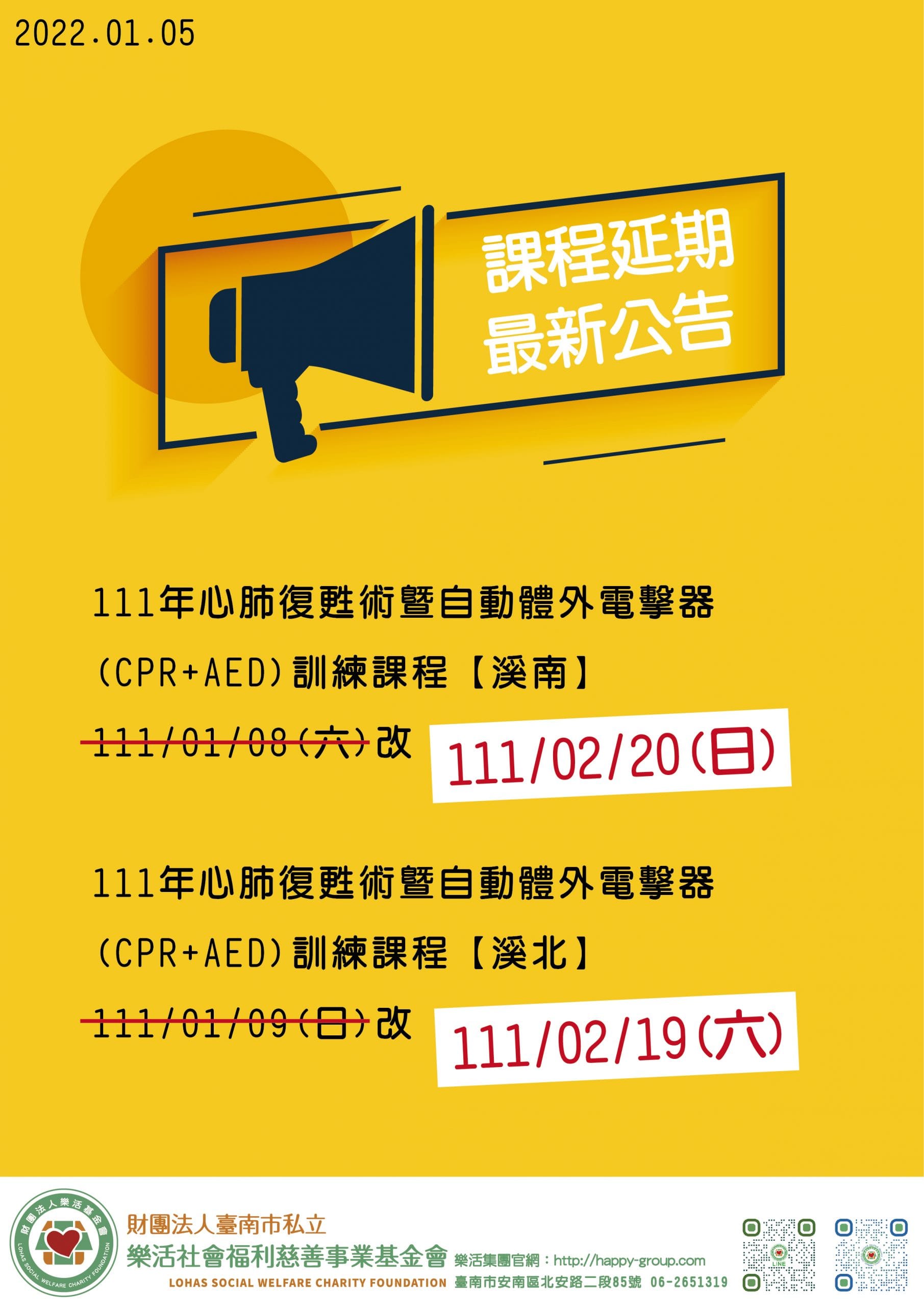 上次還來不及報名的同學趕快來搶名額啦 111年心肺復甦術暨自動體外電擊器(CPR+AED)訓練課程【溪南】 課…