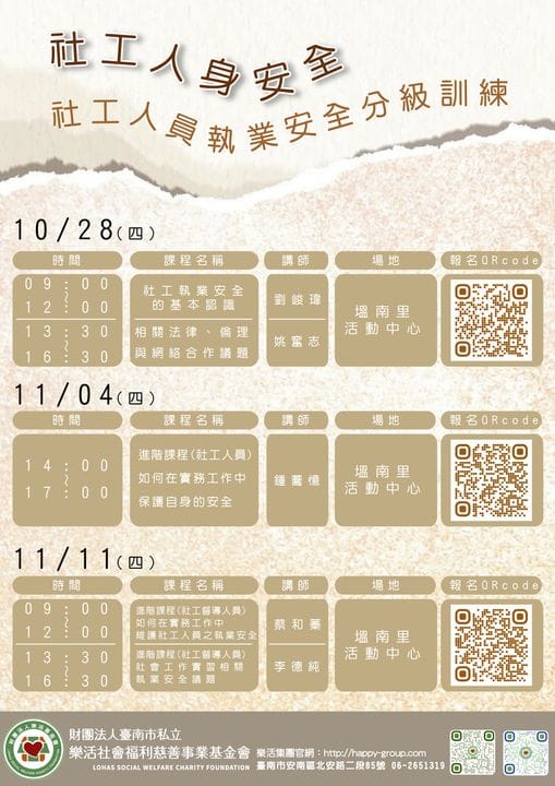 社工人員專業的訓練課程,歡迎社會福利單位的社工人員來報名參加,提升專業知識。