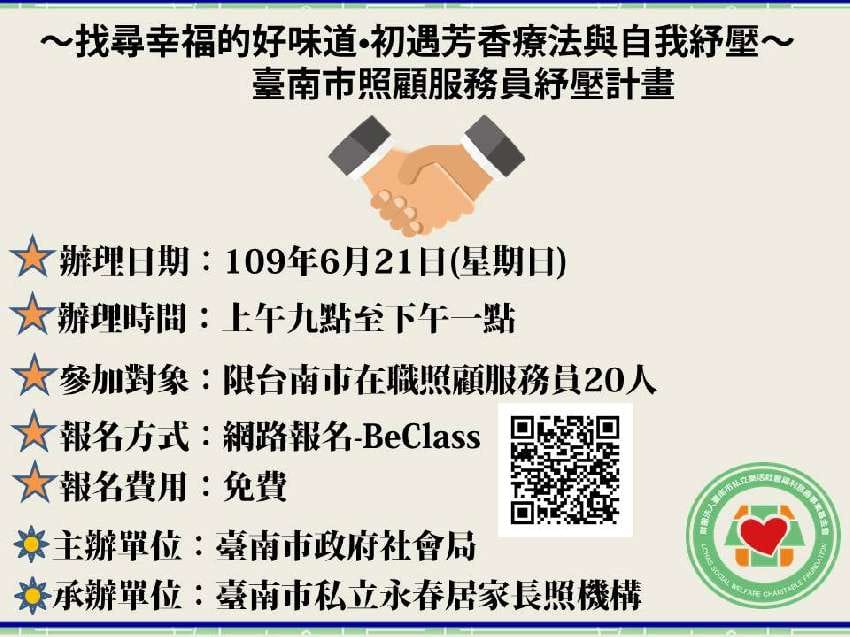 💖109年~找尋幸福的好味道•初遇芳香療法與自我紓壓~ 臺南市照顧服務員紓壓計畫💖 ⭕️緣由台灣社會高齡者與身…