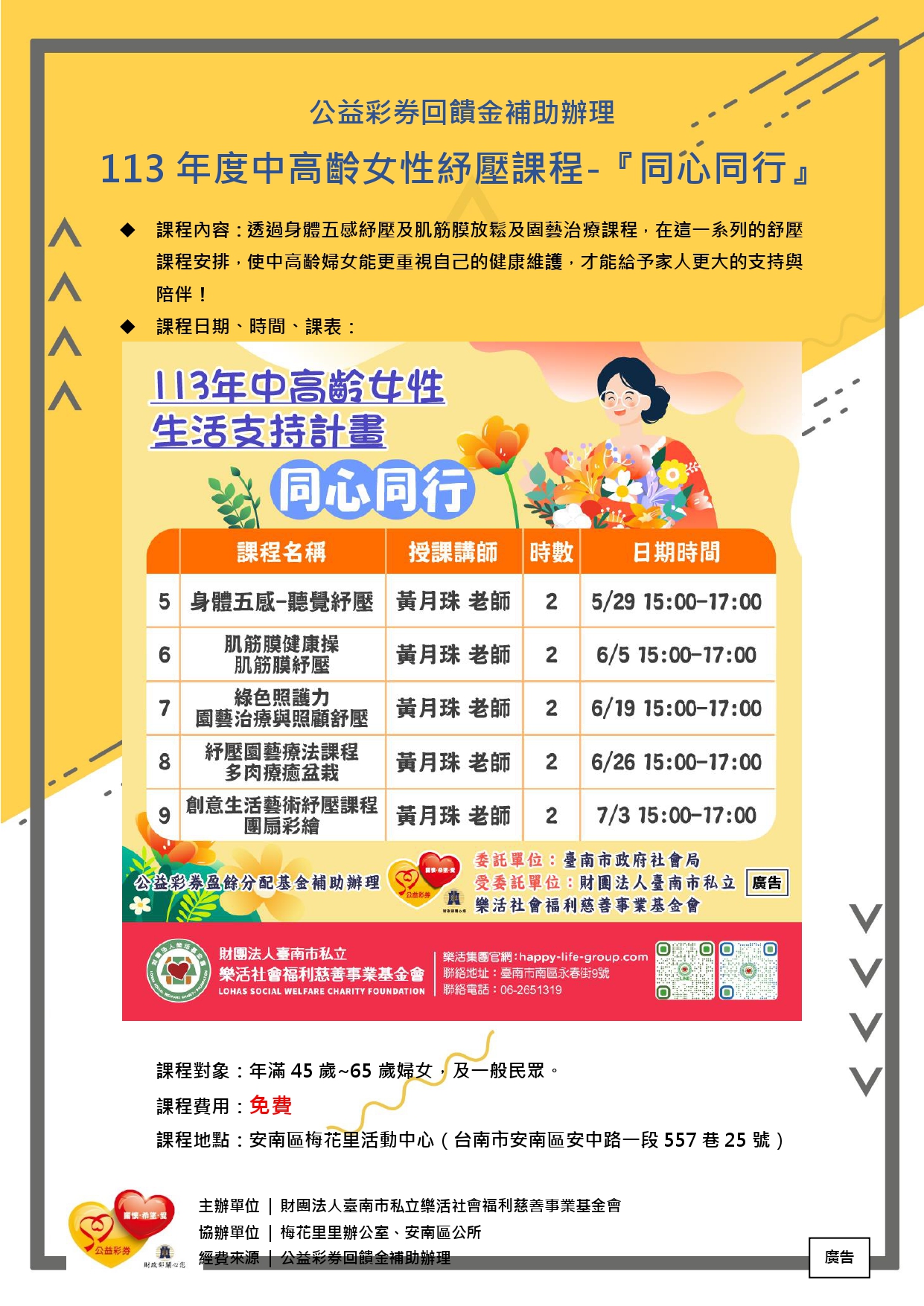 安平樂活學堂咱的好厝邊 5月份的課表出爐囉~! 快來一起上課吧! 體適能運動、藝術創作、 家屬支持團體課程、 …