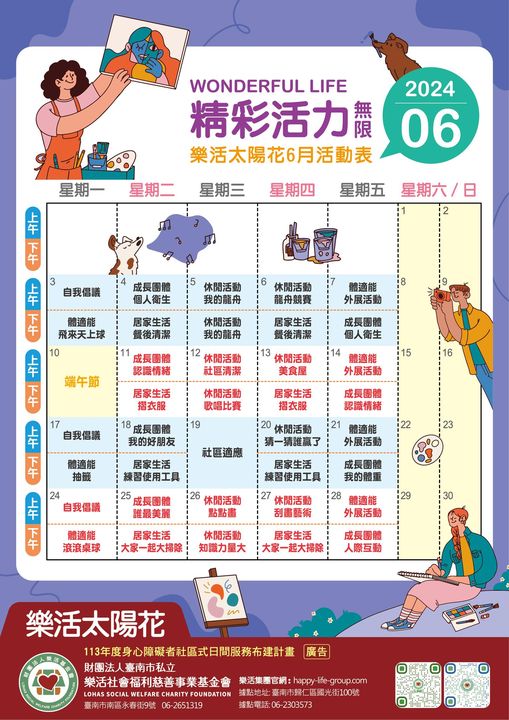 【樂活太陽花】6月份活動表