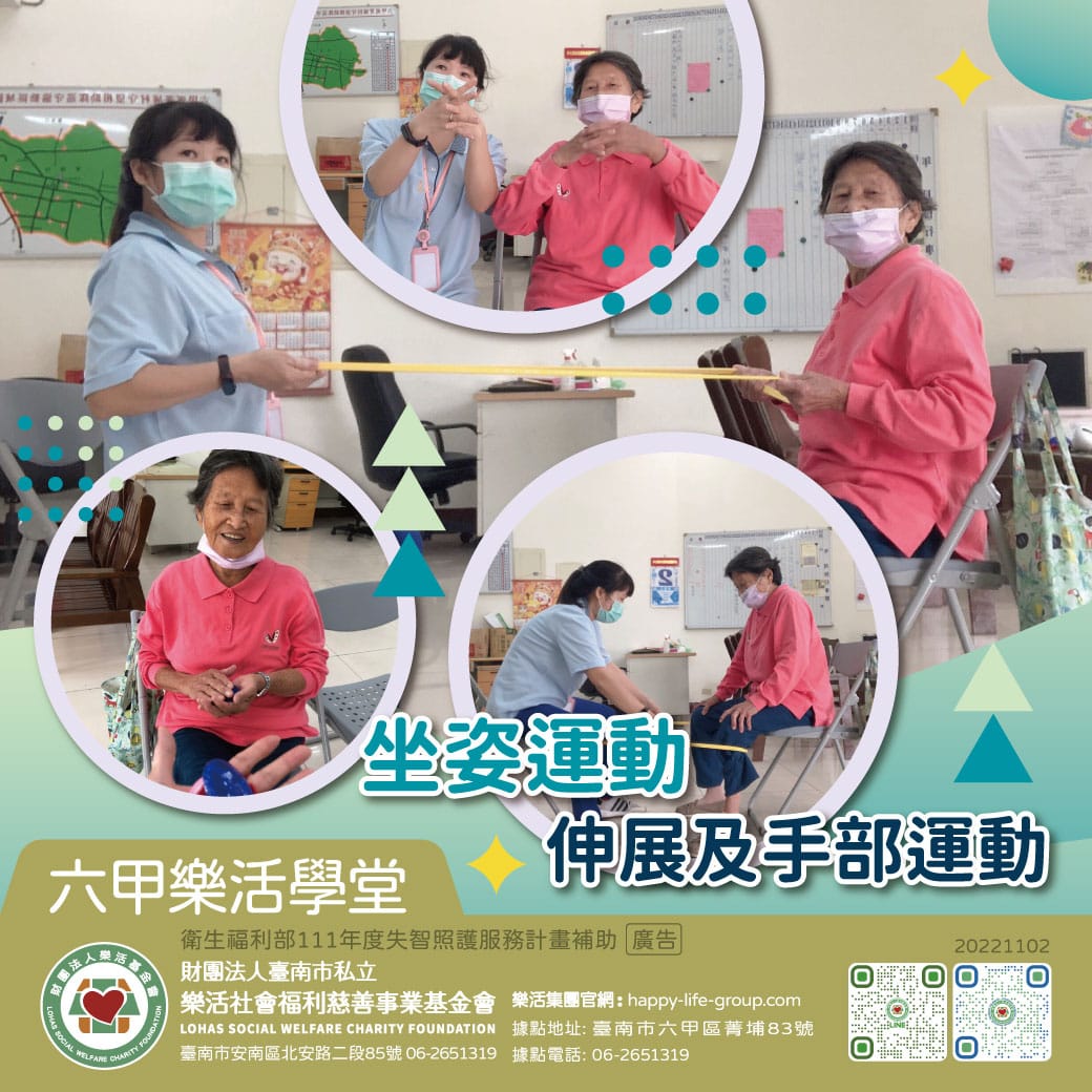 六甲樂活學堂 【今日課程:坐姿運動】 伸展及手部運動 大家一起動一動!!! 維持不退步就是最大的進步! 六甲樂…