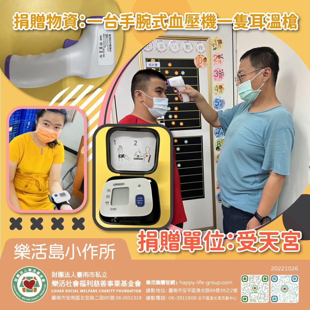 🐳樂活島小作所🐳樂活島有愛 有您真好🥰感謝「受天宮」💖熱心公益 愛的分享💕捐贈耳溫槍一支 手腕式血壓機一台落實…