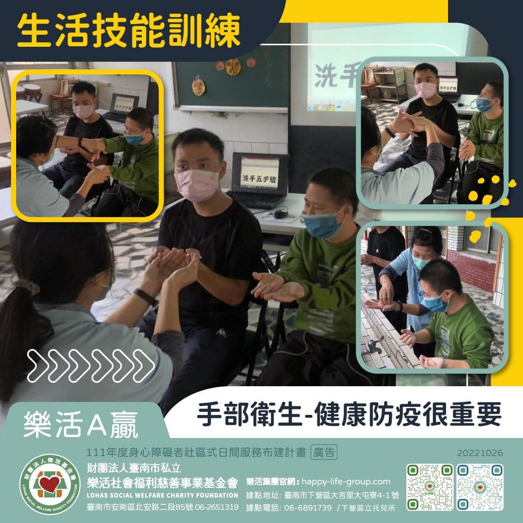 樂活A贏 生活技能訓練-手部健康衛生! 健康防疫很重要~~跟著我們一起– [內.外.夾.弓.大.立…