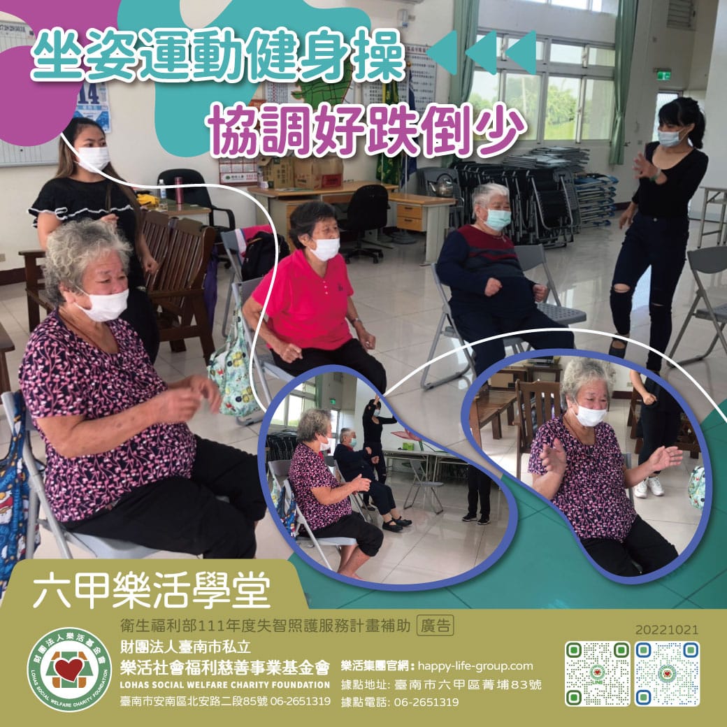 六甲樂活學堂 【今日課程:預防跌倒】 坐姿運動-健身操 訓練協調 減少跌倒 快來跟大伙一起動一動!! 維持不退…