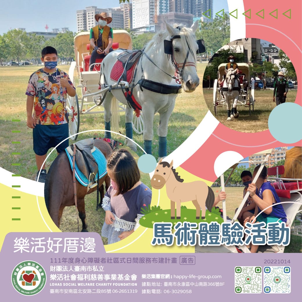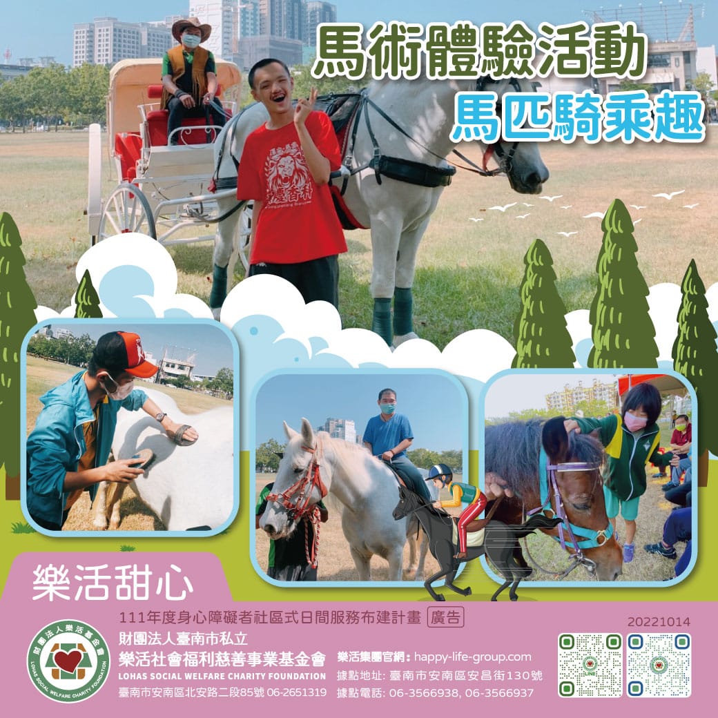 樂活甜心馬術體驗活動 馬匹騎乘趣,騎馬真好玩 今天一早智青們就到甜心站集合,出發前往西拉雅廣場參加活動。 感謝…