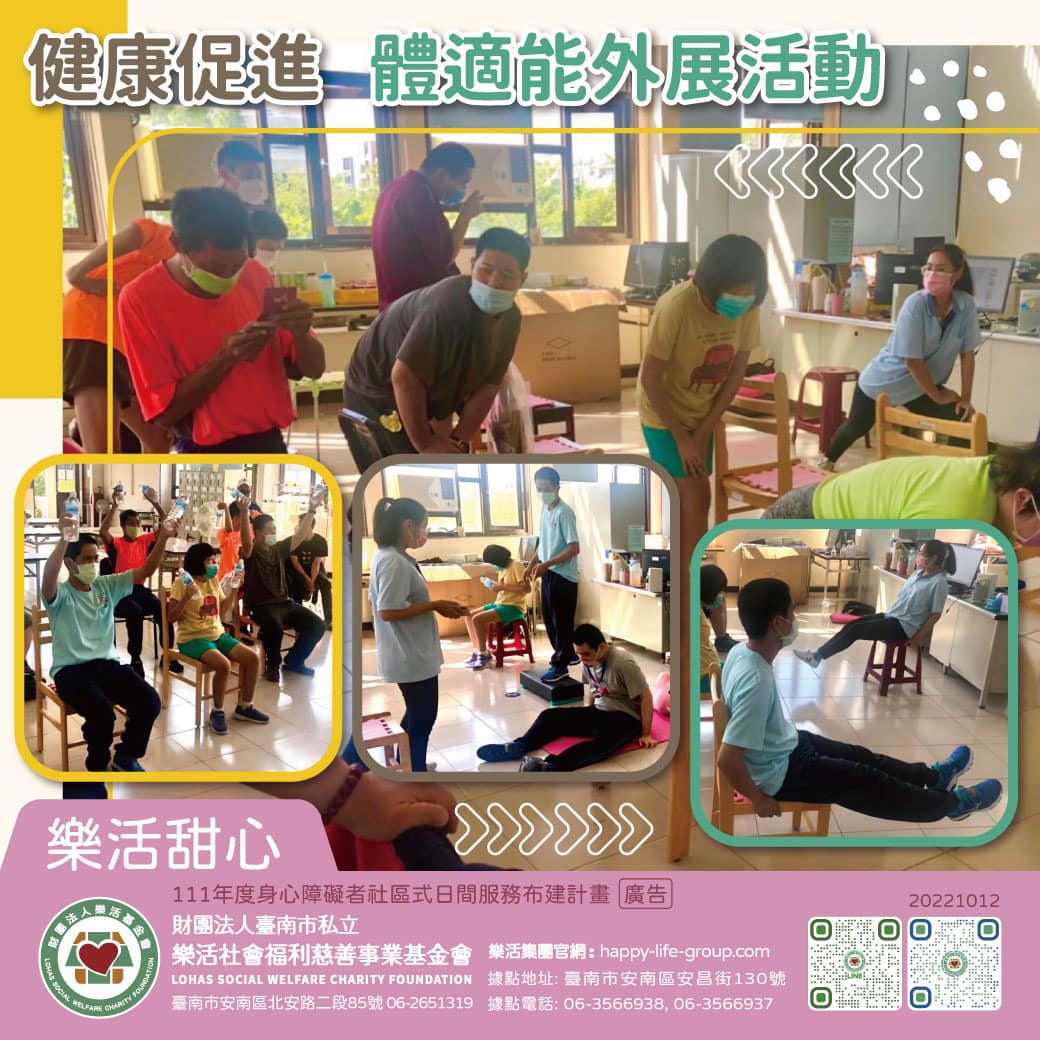 樂活甜心健康促進 八次體適能外展活動開始倒數囉! 起先的測驗到現在的肌力運動,讓我們每週三的運動量增加肌耐力訓…