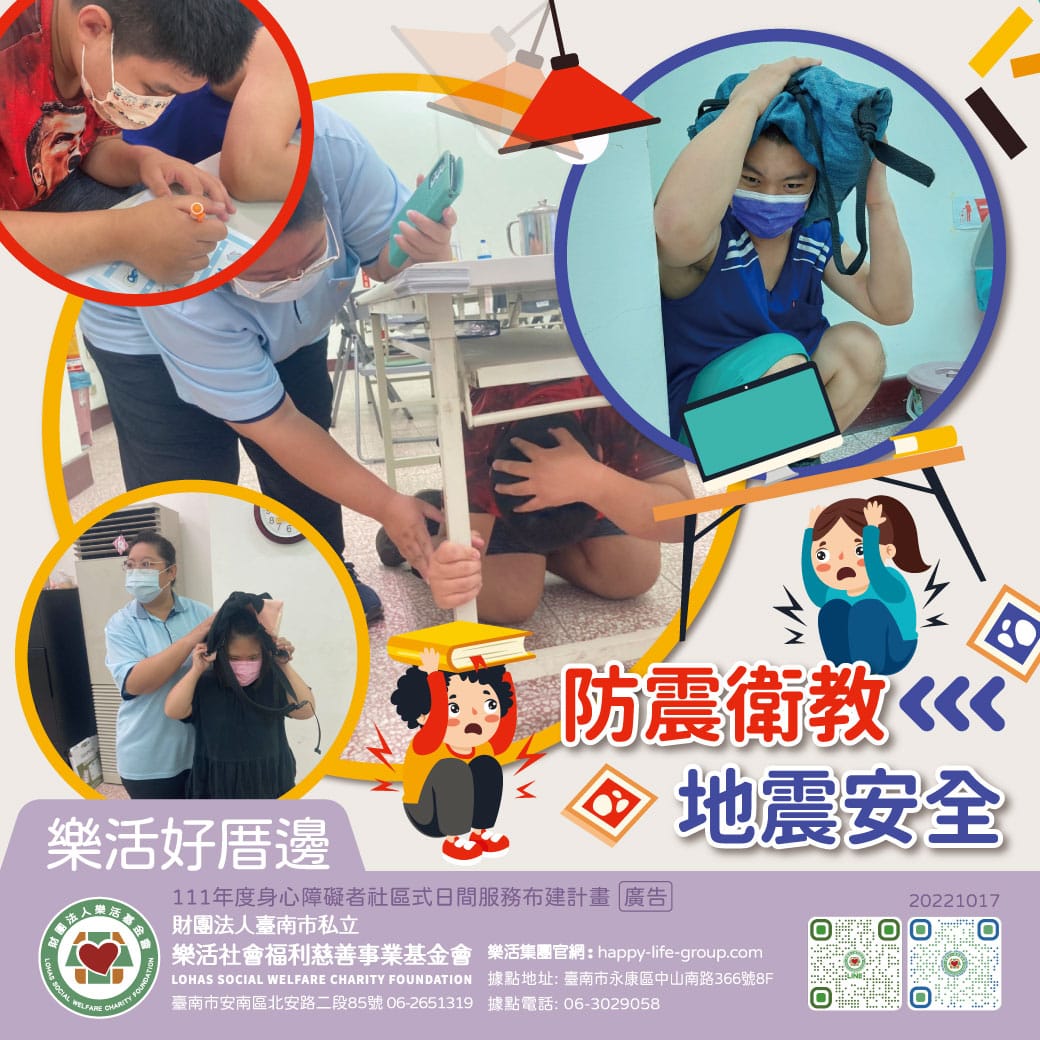 抱頭、找掩護、安全自救 樂活好厝邊持續招生中 防震衛教-地震安全 地震包要準備什麼呢 樂活好厝邊的專業工作人員…