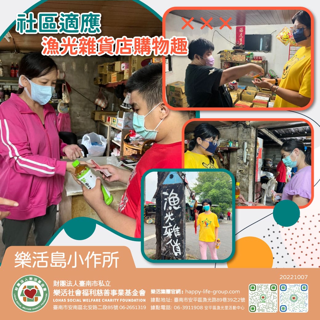 樂活島小作所 社區適應 漁光雜貨店購物趣 智青每日努力做代工 偶爾也要犒賞認真工作的自己 大夥去逛逛附近的雜貨…