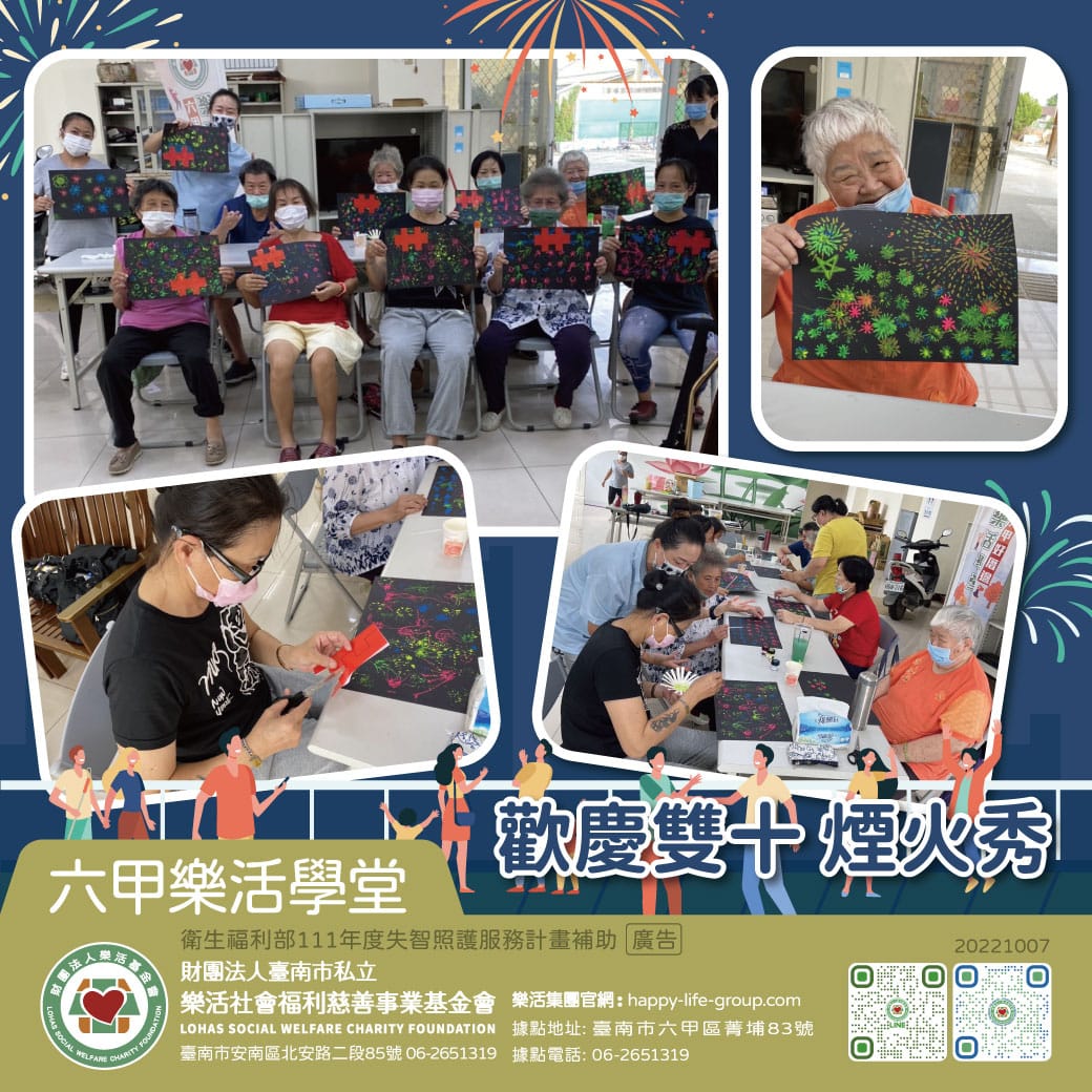 六甲樂活學堂 【今日課程:歡慶雙十-煙火秀】 國慶連假準備啟動囉~ 今天陪長輩們在紙上放煙火, 用吸管吹畫、棉…