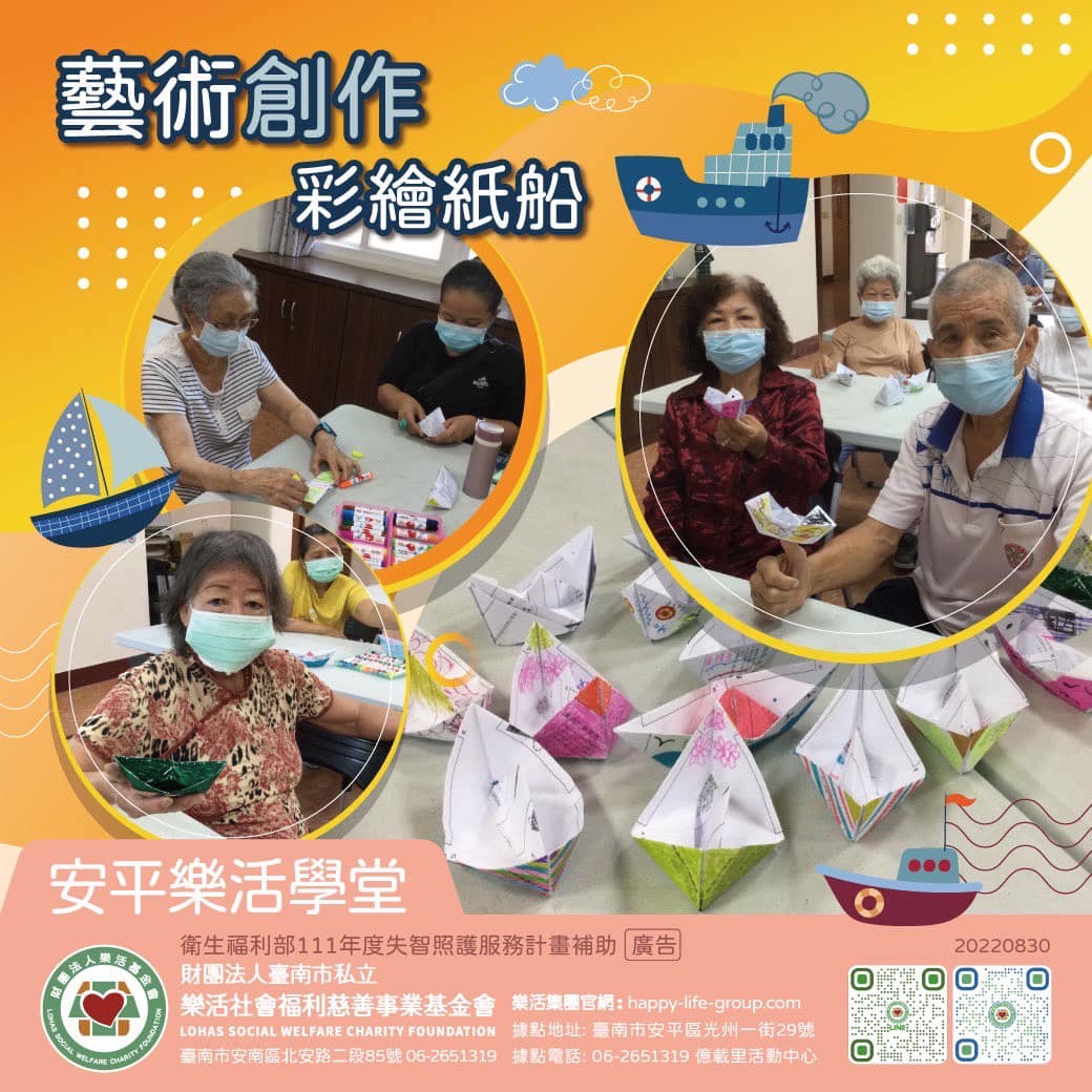 安平樂活學堂【藝術創作-紙船繪畫】透過自己摺的紙船在上面畫上不同的色彩每一艘船都變得五彩繽紛呢期待明天的活動&…