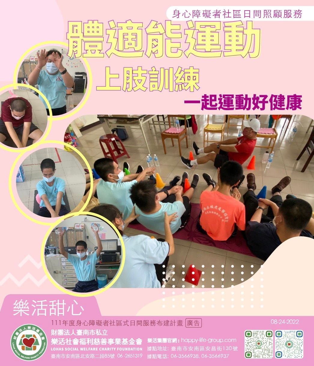 好奇好奇!為何大家都坐在地上呢?原來今天是體適能運動透過仰臥起坐可以訓練腹部肌力,經過老師的改版,利用擊掌及三…
