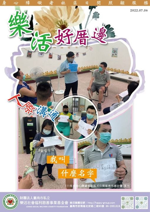 人際溝通從表達自己開始 樂活好厝邊的專業工作人員帶領夥伴們 練習說自己的名字學習和夥伴交流共同學習成長 在團體…