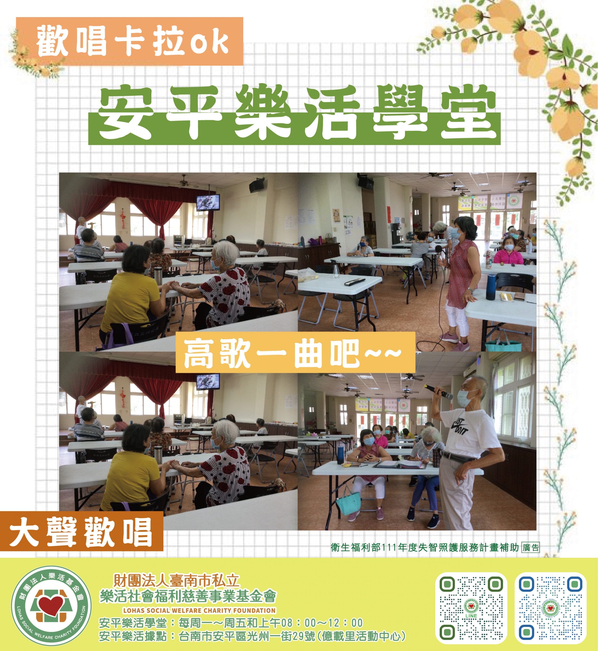 又到了快了星期五, 今日開開心心朋友們一同高歌一曲~ 期待下周活動!開心!! 安平失智據點依COVID-19防…