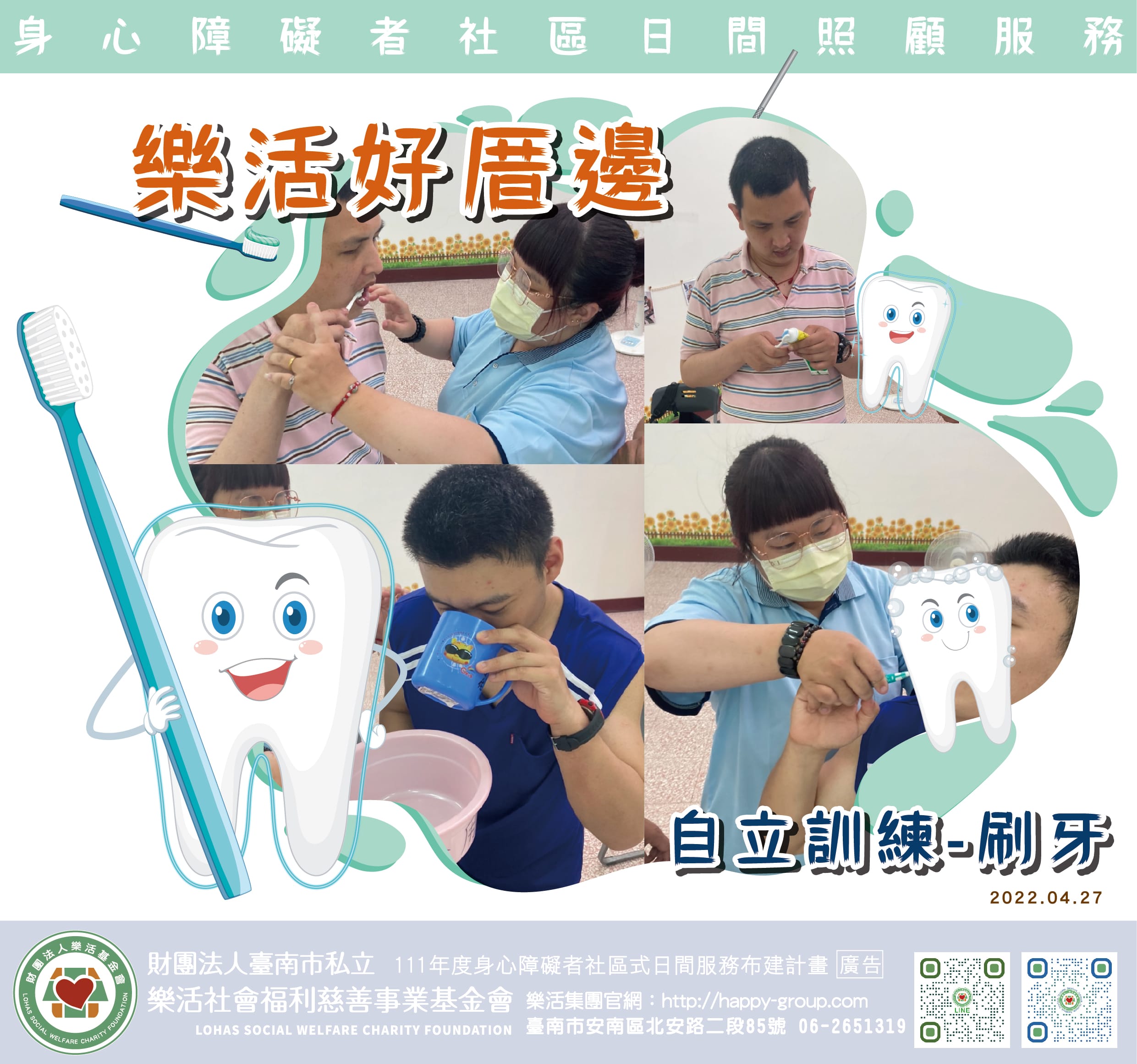先刷上排牙齒左邊刷完刷右邊 在刷下排牙齒右邊刷完刷左邊 漱口要對準臉盆免得水濺到桌面唷 貼心的服務持續的學習快…