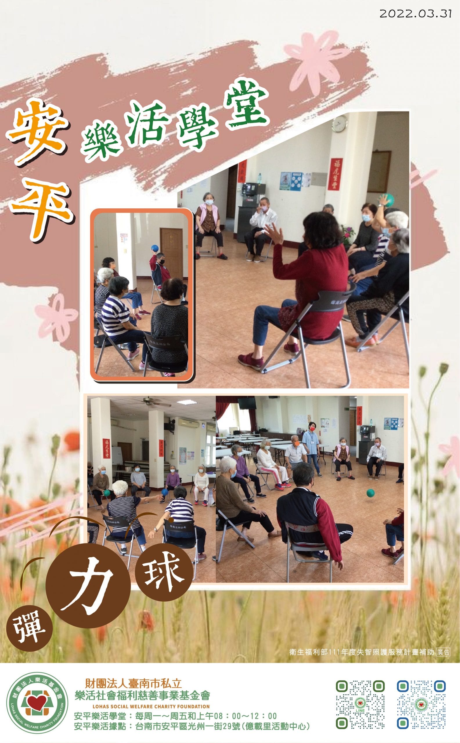 安平樂活學堂的億群好朋友 彈力球動動動 你丟我接你傳我接 圍個圈大家都玩得好開心喔 期待明天的活動 安平失智據…