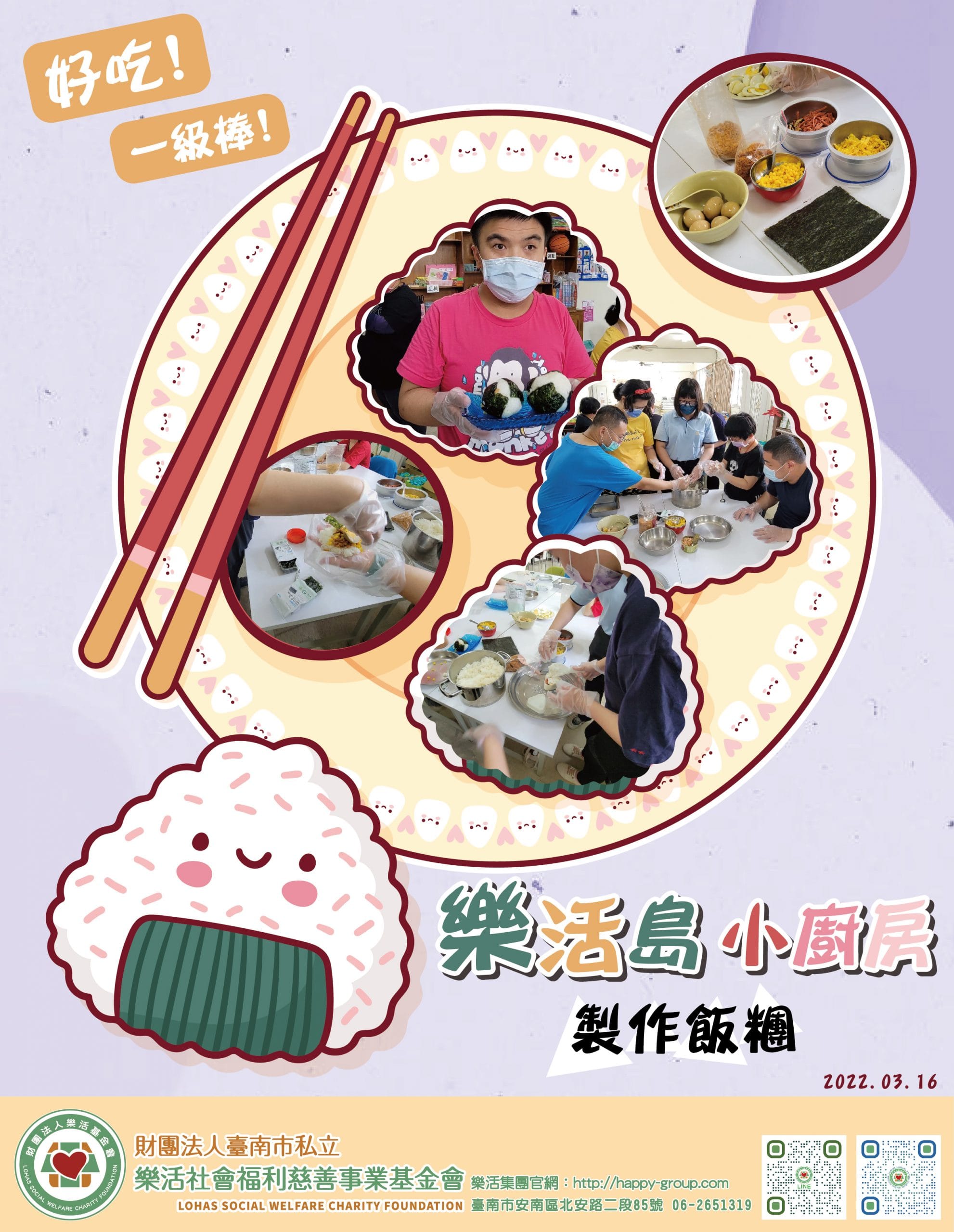 本次樂活小廚房料理是-飯糰 每位智青都用自己的雙手包出美味的飯糰 自己做的最美味。