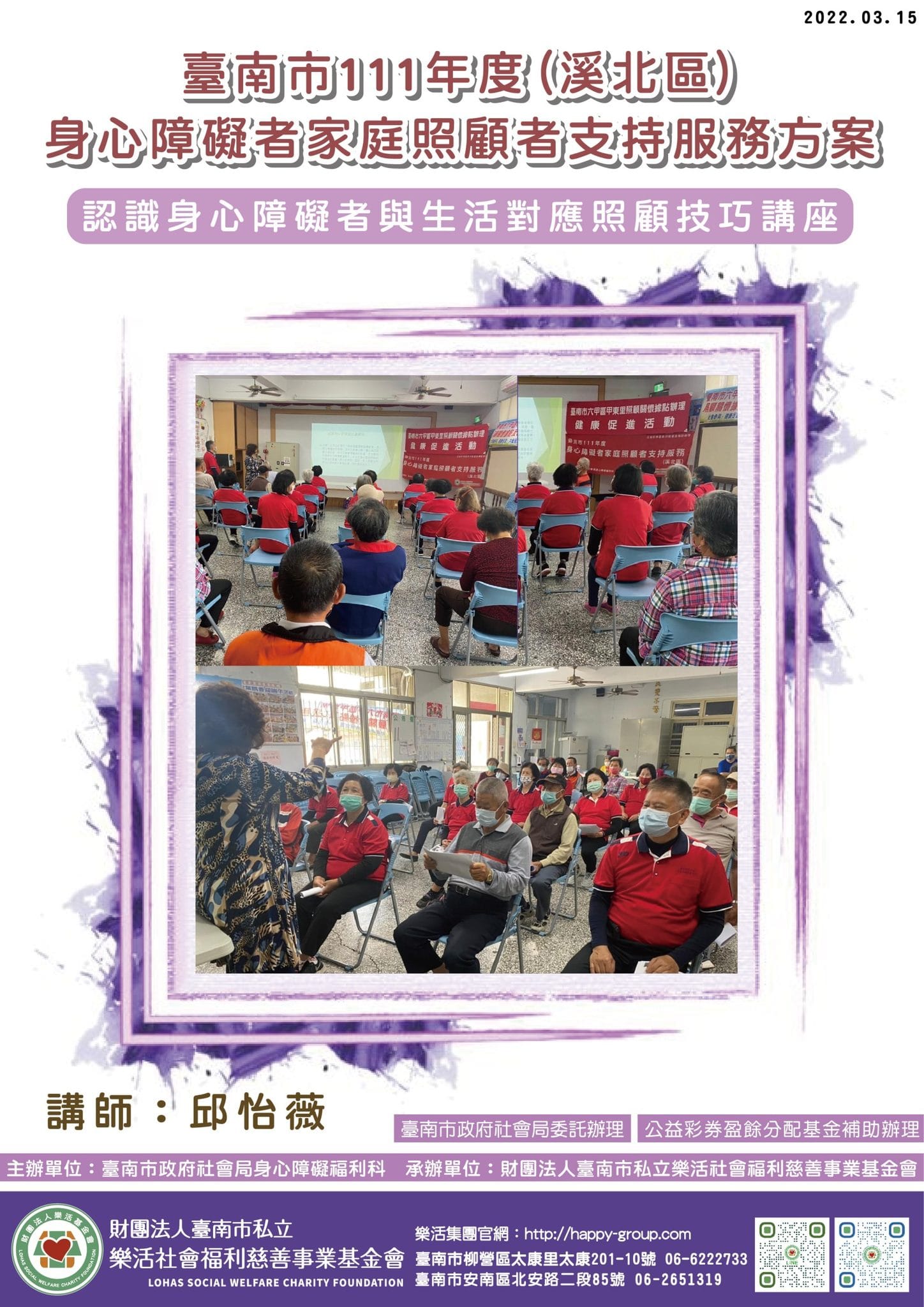 111年度身心障礙者家庭照顧者支持服務-溪北區 💟⭕身心障礙信託講座⭕有請邱怡薇社工師為我們講解何謂信託,又該…