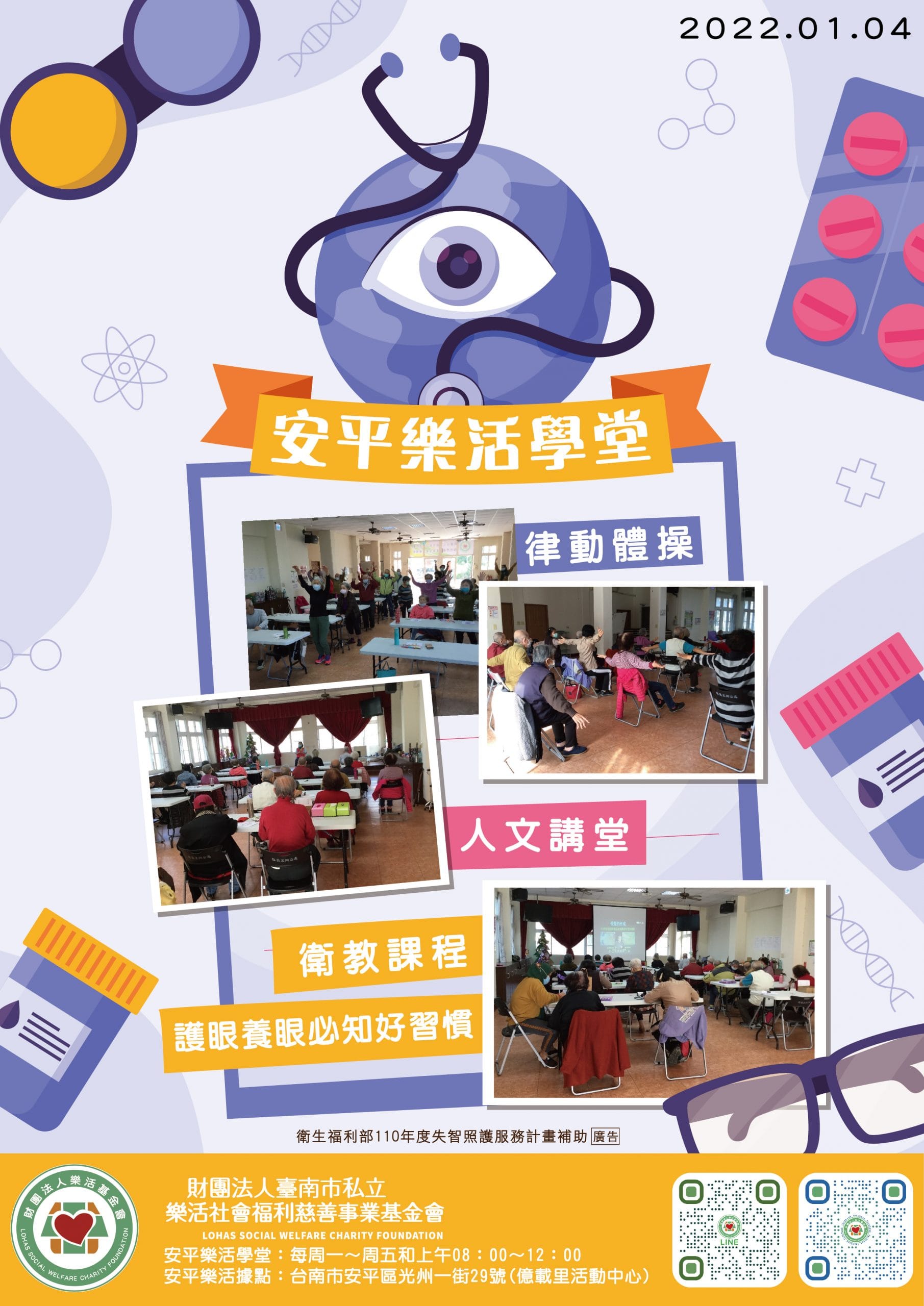 眼睛是靈魂之窗 透過課程教導大家如何保護眼睛 律動體操多多運動身體好期待明天的活動 安平失智據點依COVID-…