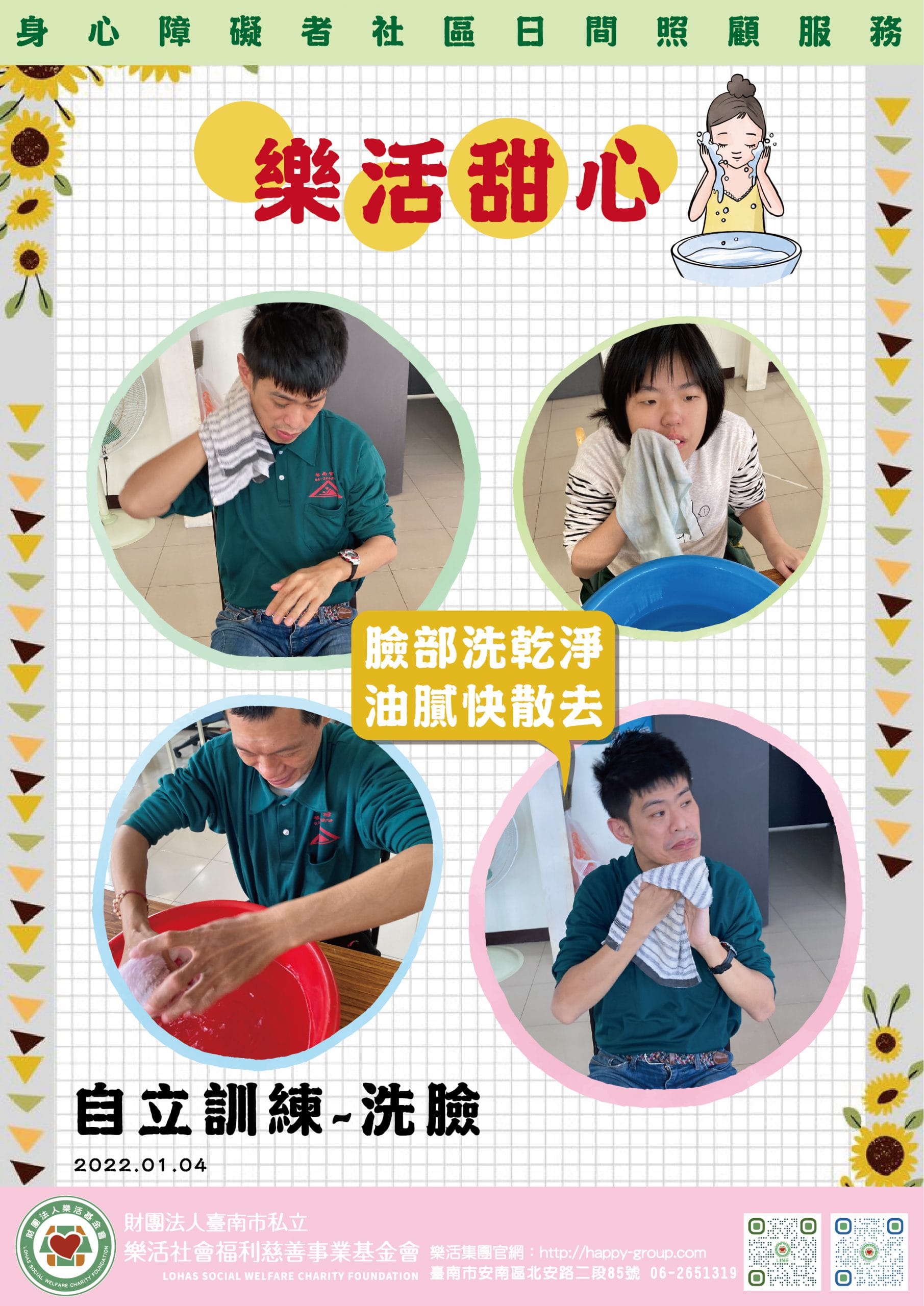 大家一起來洗臉,好好的按照額頭、眼睛、鼻子、嘴巴、兩頰、耳朵、下巴、脖子來一一的洗乾淨自己的臉唷,乾乾淨淨~歡…