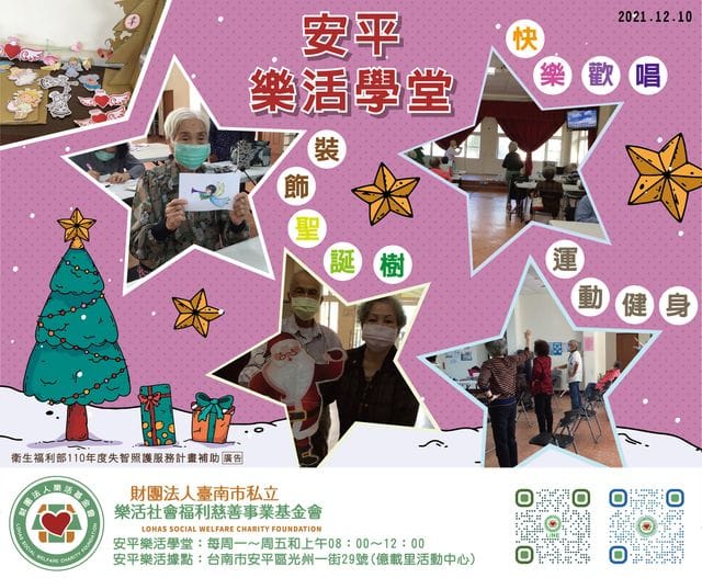 快樂製作聖誕樹 裝飾讓色彩更繽紛了 歡喜唱歌共譜佳音運動身體好快樂做運動期待下週的活動 安平失智據點依COVI…