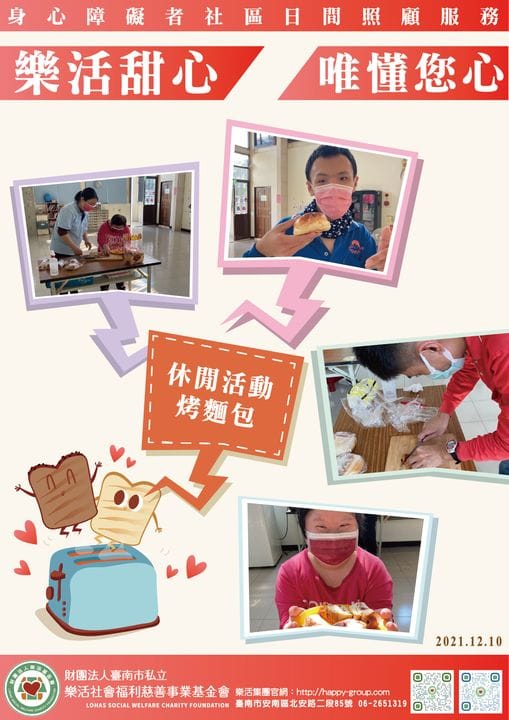 樂活甜心的專業工作人員帶領著夥伴們一起烤麵包了呢, 在工作人員的引導下,夥伴們將麵包打開、 使用工具將麵包切好…