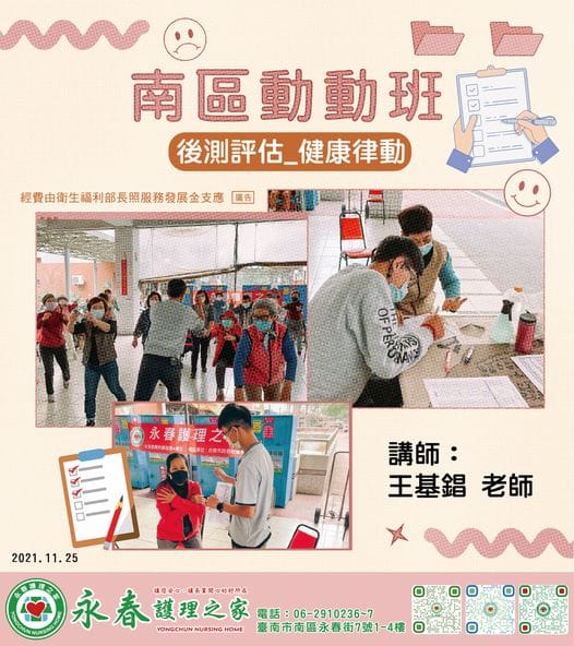 今天為學員們做後測,這也意味著動動班將進入尾聲。 希望學員們在動動班結束後,依然能持續保持運動的好習慣,維持健…