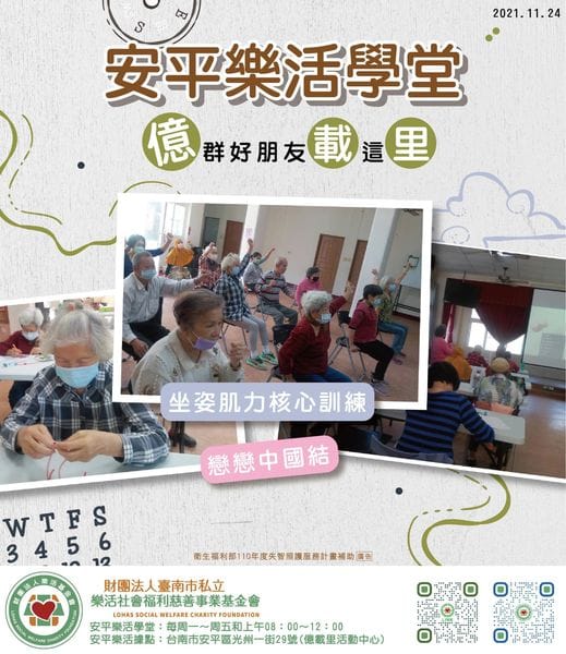 今天的活動走的是民俗風 大家一起來學中國結 很有意義喔接著來動動身體暖和筋骨使身體健康 期待明天的活動 安平失…