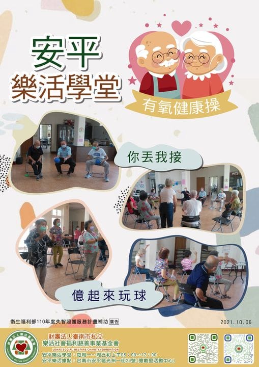 安平樂活學堂的億群好朋友 有氧健康操~丟丟球~動動身體 心情愉悅期待明天的活動 安平失智據點依COVID-19…