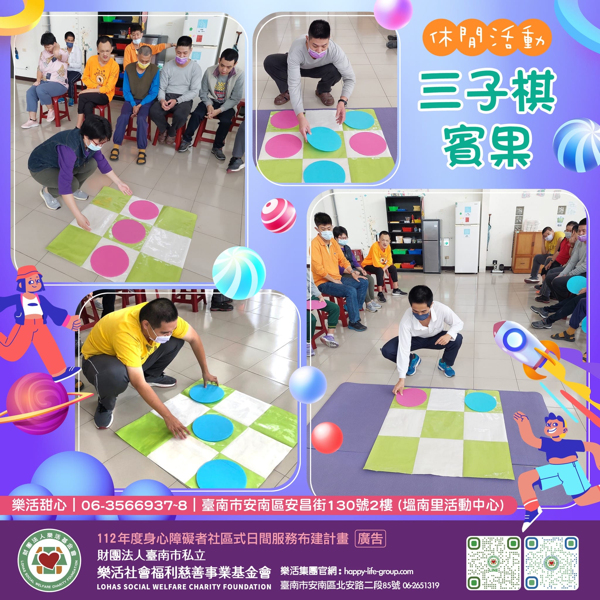 樂活甜心 休閒活動-三子棋賓果 快來看看甜心的青年們在玩什麼?沒錯就是放大版三子棋賓果,大家分為兩組輪流下棋,…