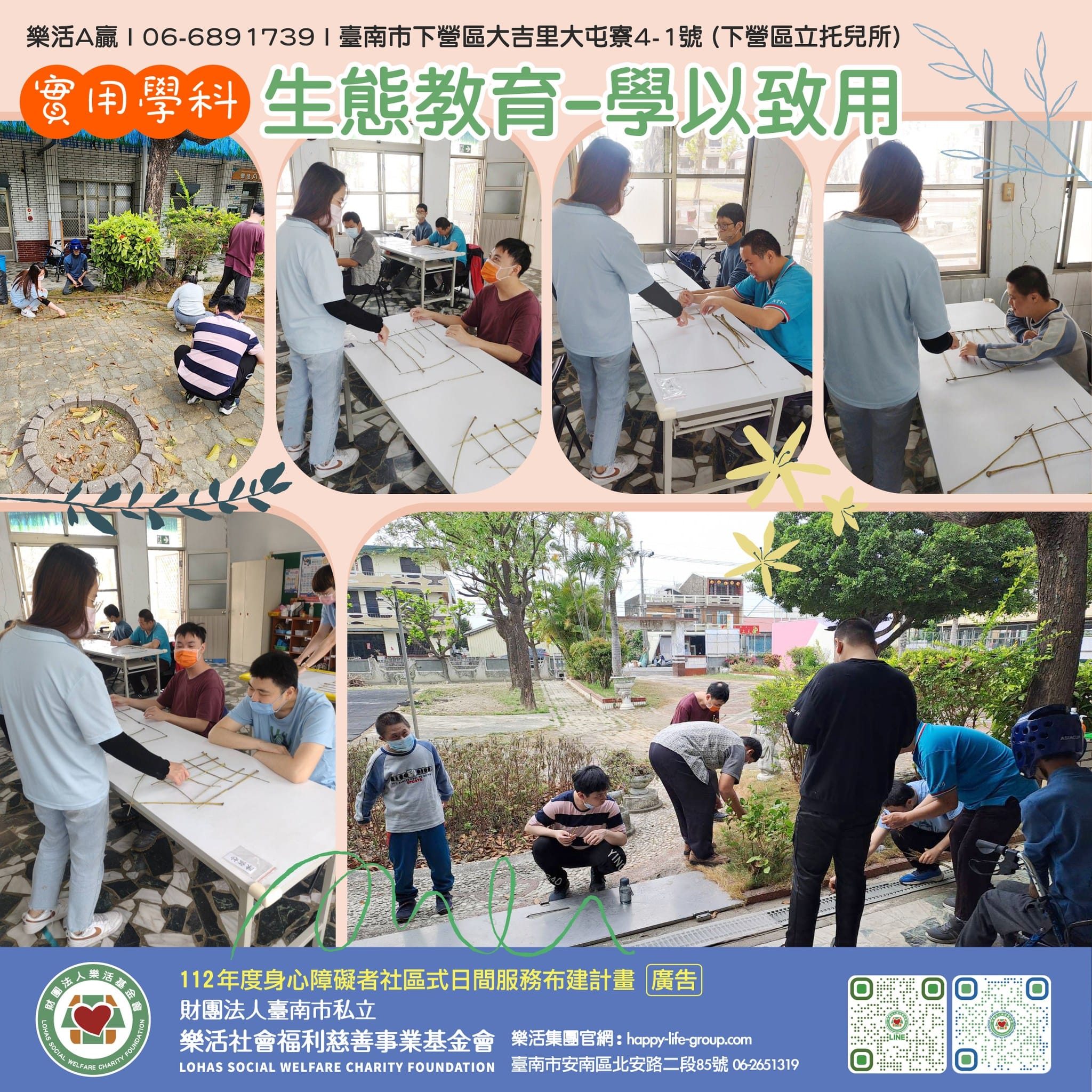 樂活A贏<實用學科–生態教育,學以致用>大家一起來撿樹枝,把環境整理乾淨再把樹枝拼成喜…