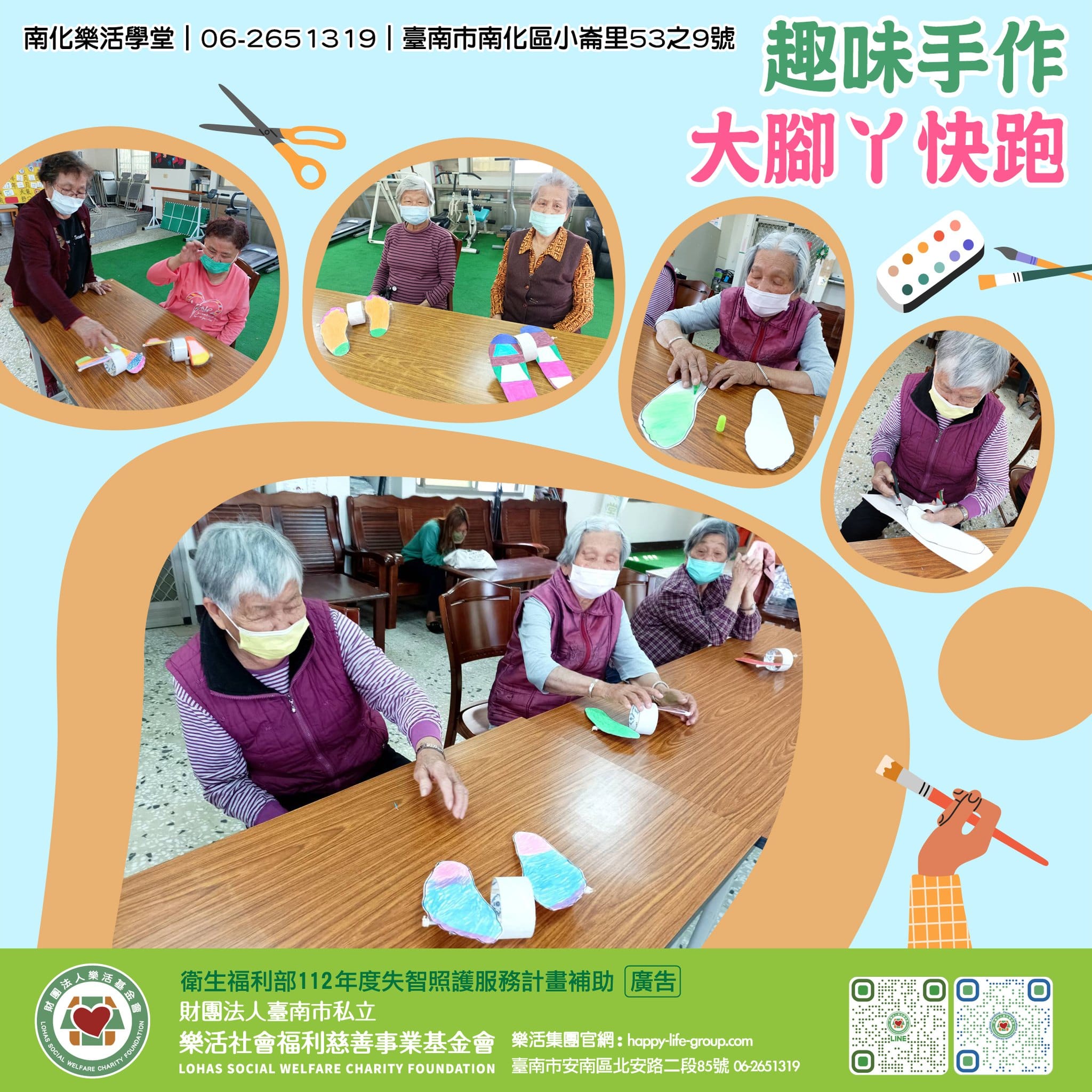 【趣味勞作-大腳丫快跑】今天的勞作,請長輩們脫下鞋子,協助描繪腳型有趣的是,長輩們都說自己是『鴨母蹄 會食袂拖…