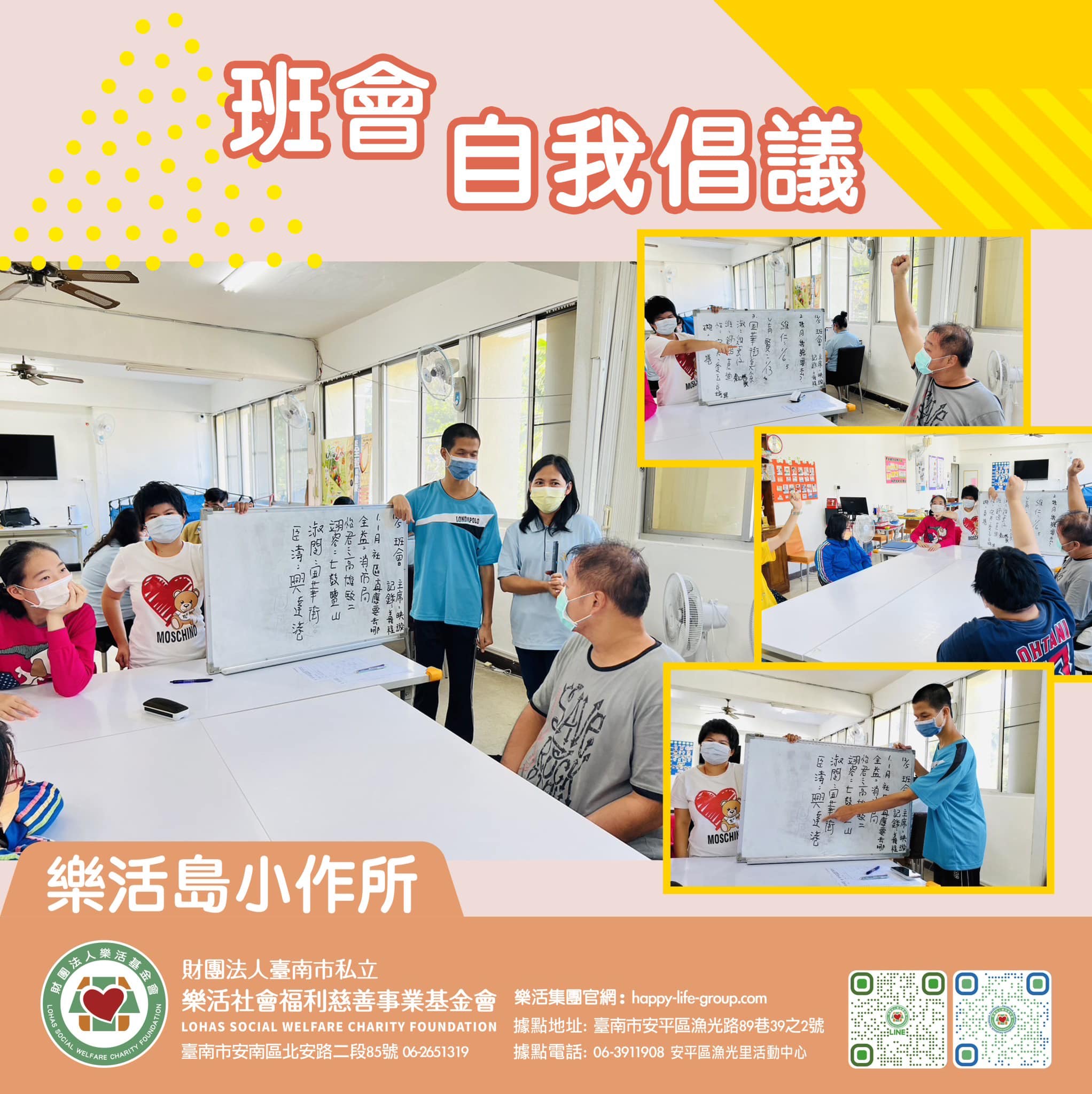樂活A 營 班會 自我倡議 說一說 最想要做的 最想要學的 勇敢做自己 權利要爭取 樂活A贏 熱烈招生中,誠摯…