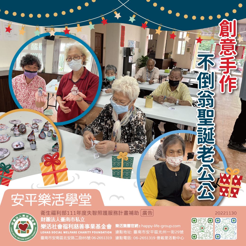 安平樂活學堂 【創意手作】 今天帶領長輩創意手作 讓聖誕節的氛圍慢慢延續 也透由手作 訓練長輩的握力跟眼力 …