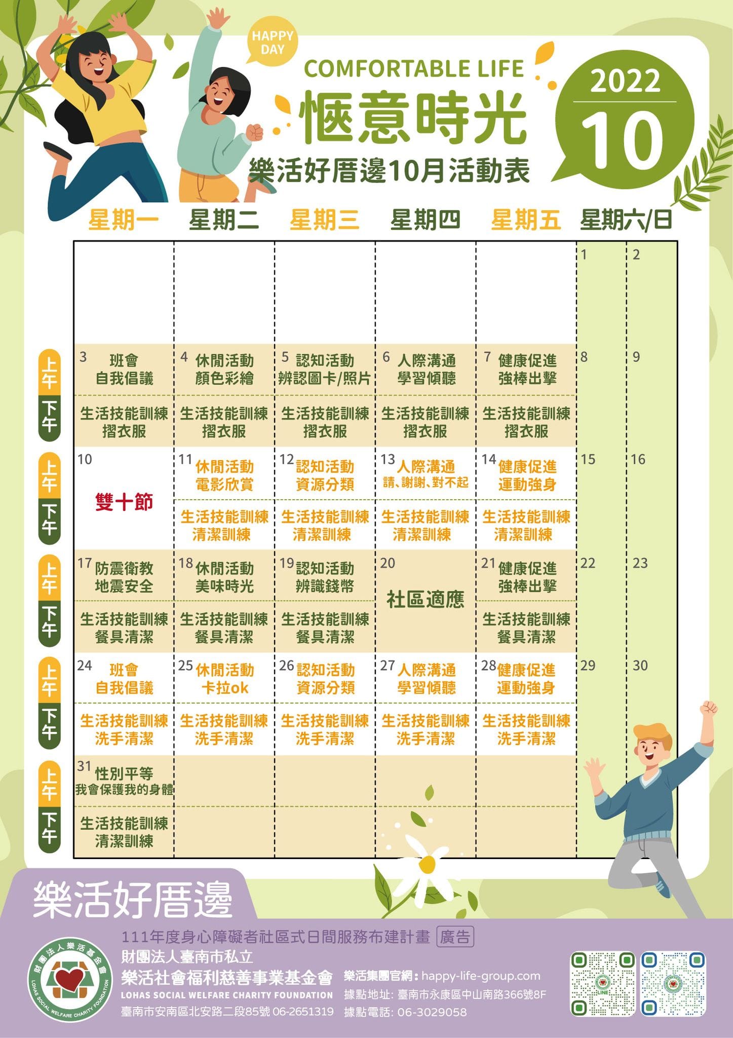 愜意時光 好玩 學習 生活訓練 好厝邊10月活動表精采呈現 快樂、開心、有所收穫 一起來好厝邊,阮的好厝邊 期…