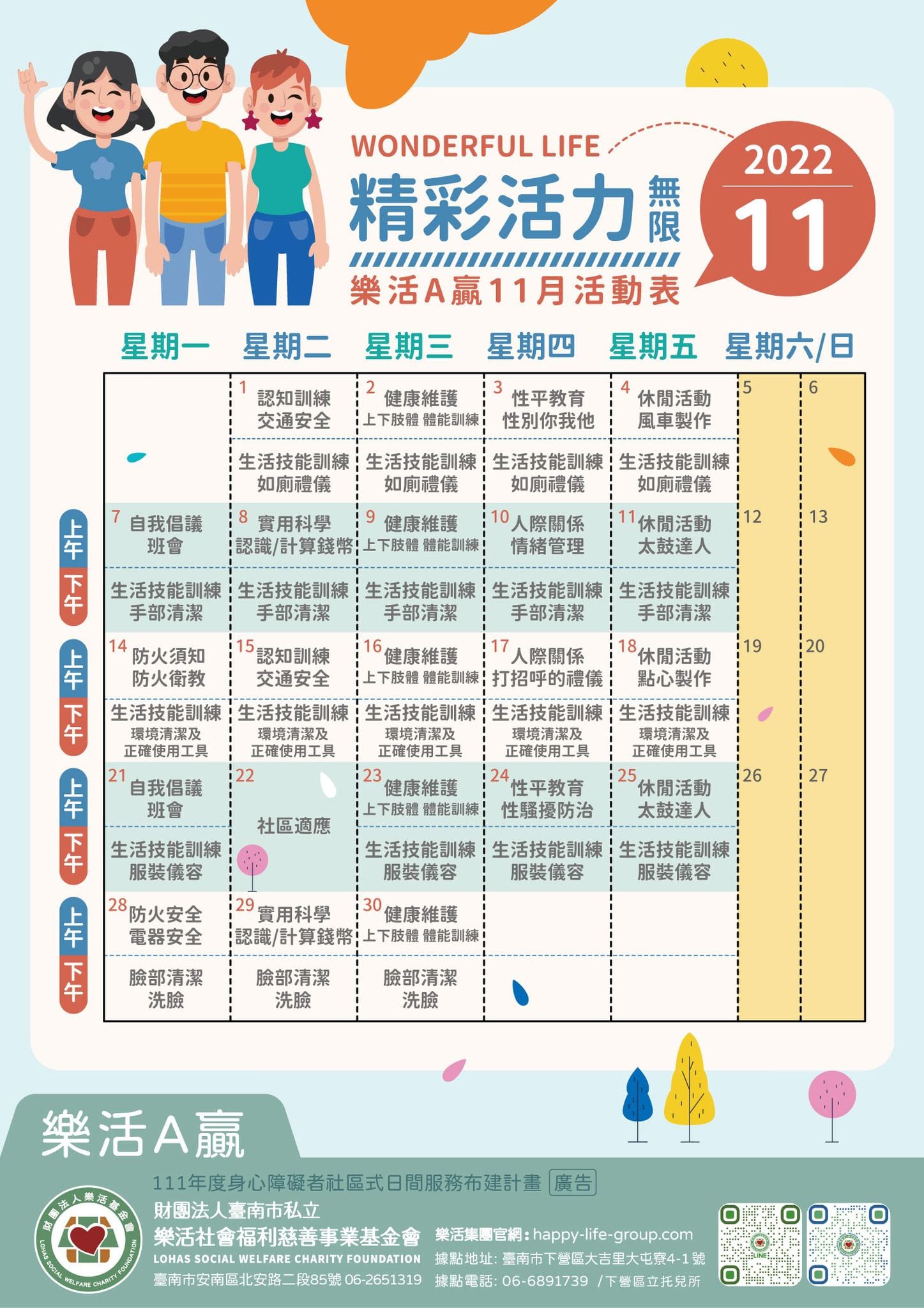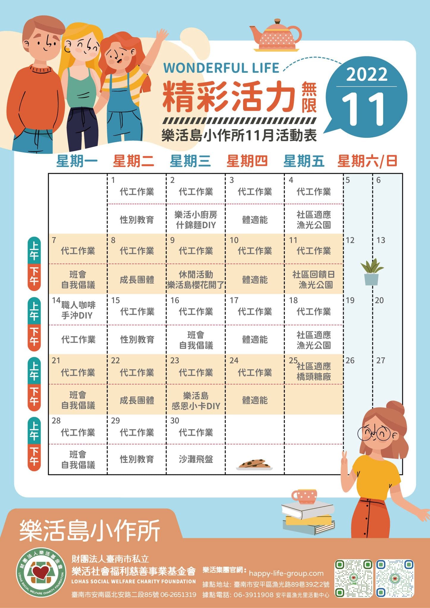 樂活島小作所 照過來!照過來!11月份活動表出爐囉 代工作業 體適能活動 休閒活動 班會活動 社區適應 樂活小…