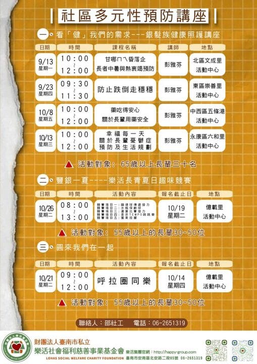 🧑🏻🦳銀髮族健康照護系列講座 等您來坐坐如何吃得健康 動得有活力 快樂過生活 讓您越活越美麗 越動越帥氣