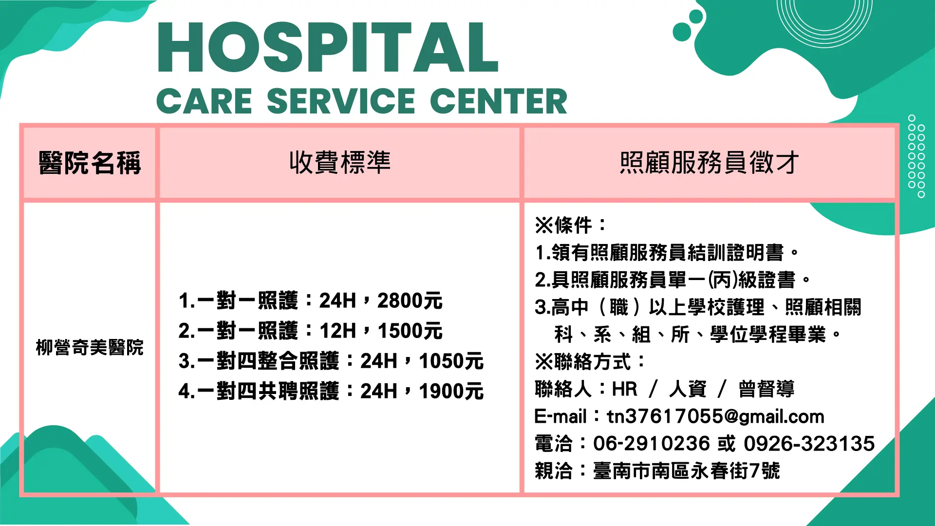 醫院簽約特約看護中心,所有人員均具有合格照顧服務員證書,專業溫暖的服務,請將照護的需求安心託付給我們!
