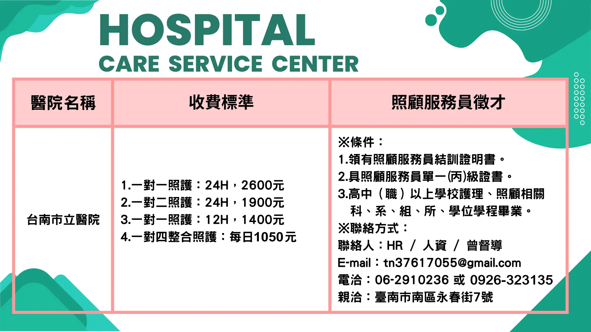 醫院簽約特約看護中心,所有人員均具有合格照顧服務員證書,專業溫暖的服務,請將照護的需求安心託付給我們!